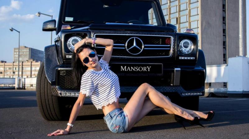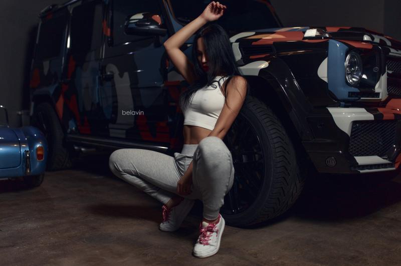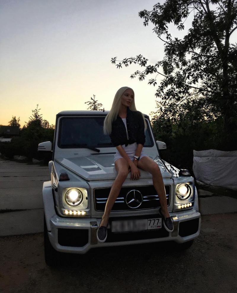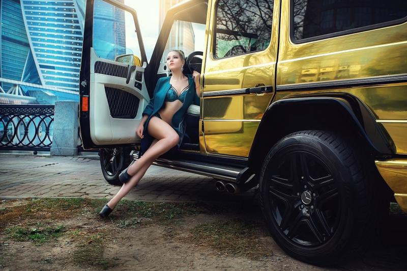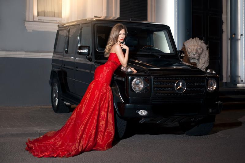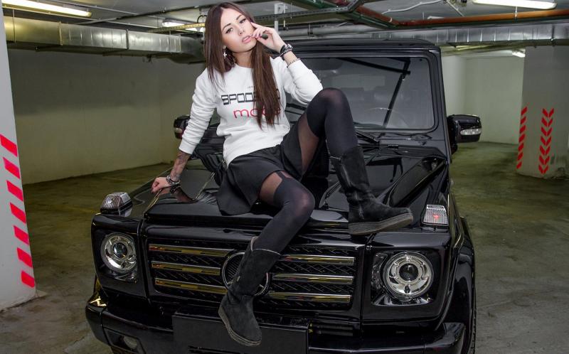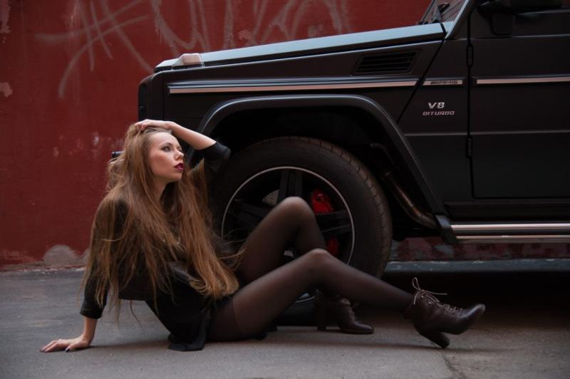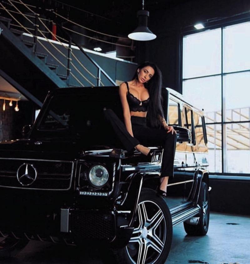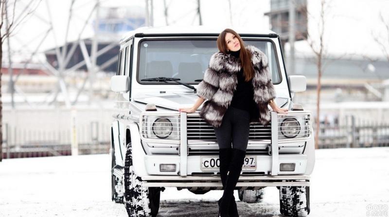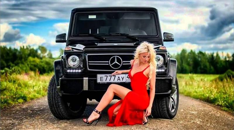 Машинка Мерседес Гелендваген девушка красотка за рулем