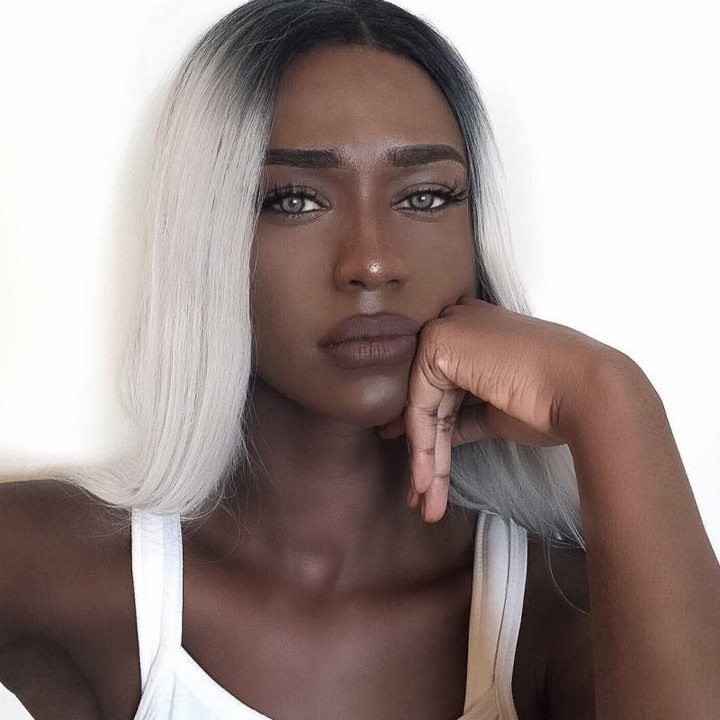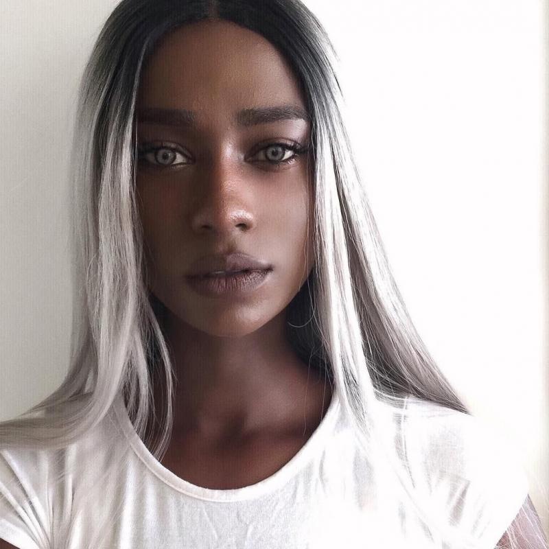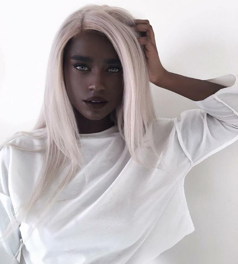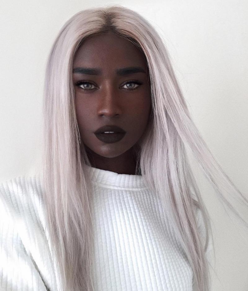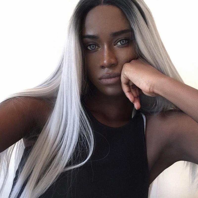 Темная модель с белоснежными волосами