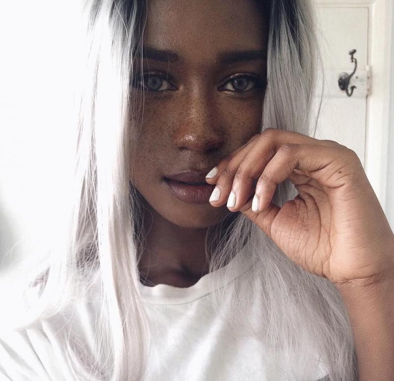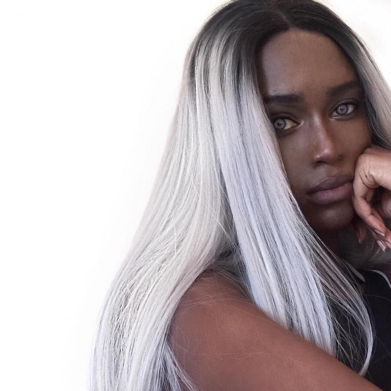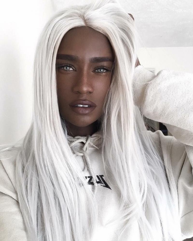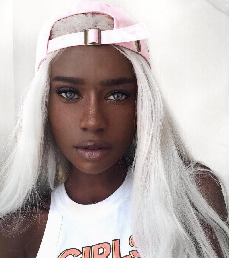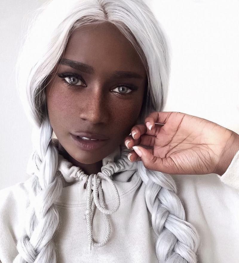 Чернокожая модель с белоснежными волосами