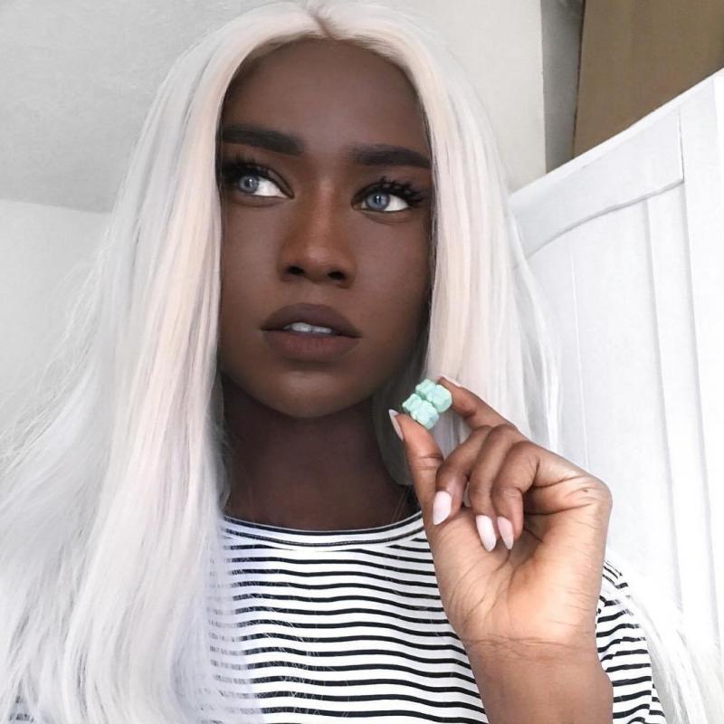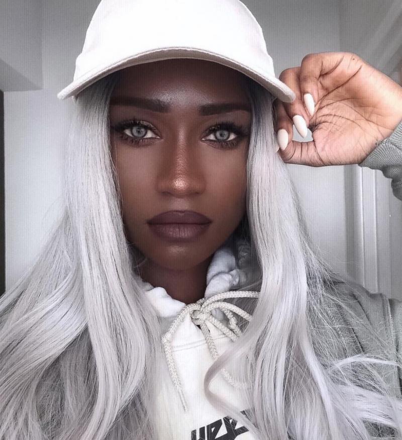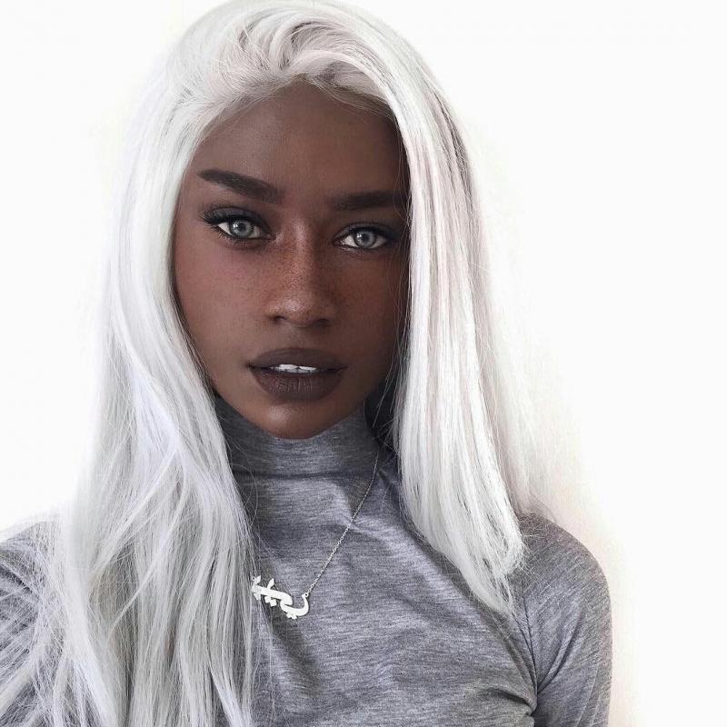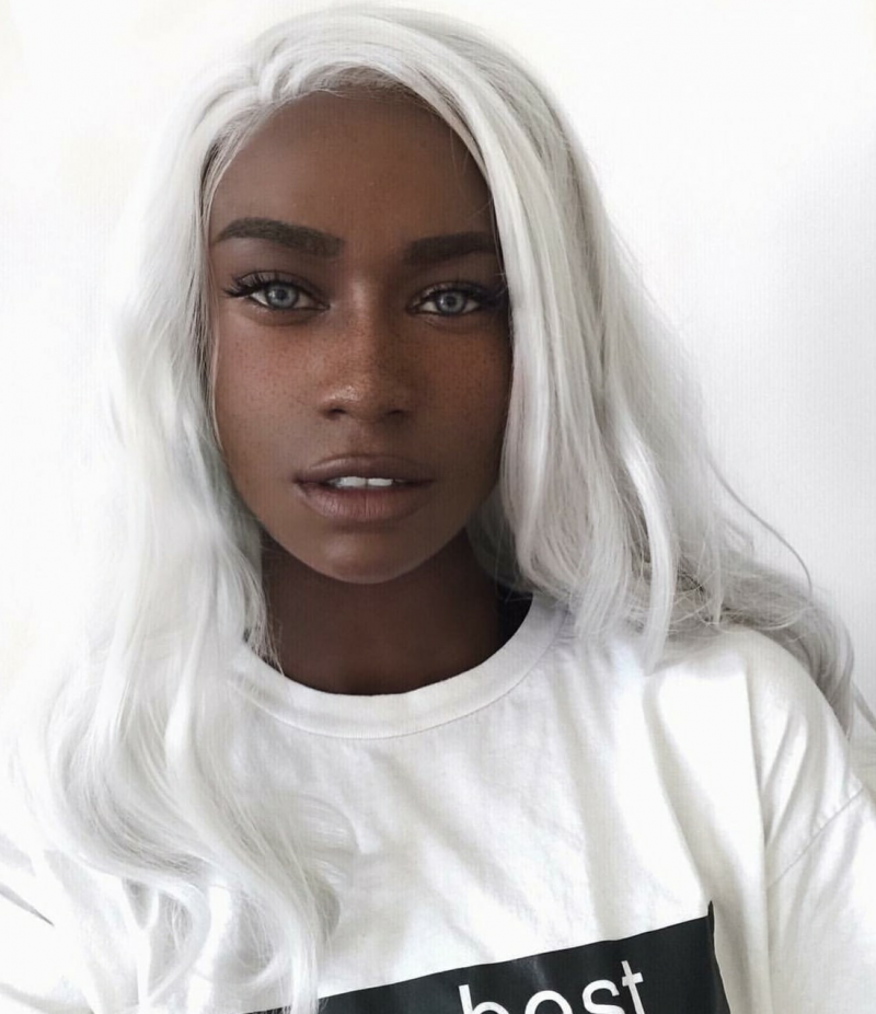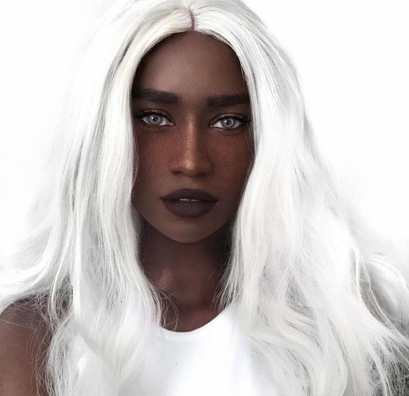 Чернокожая модель с белоснежными волосами
