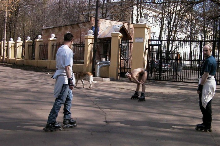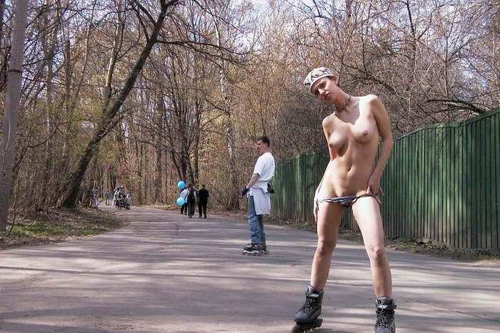 Голая девушка прокатилась на роликах по Москве (эротика)