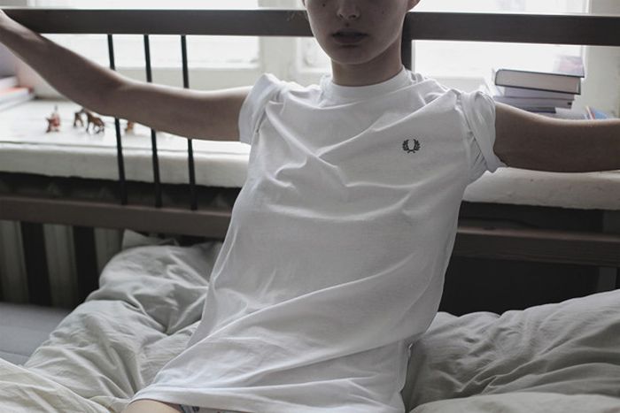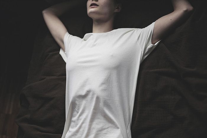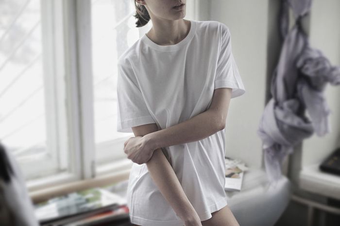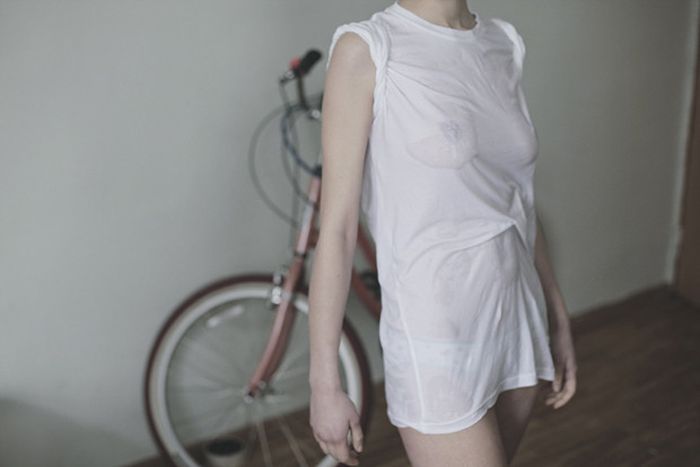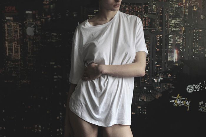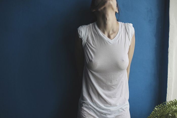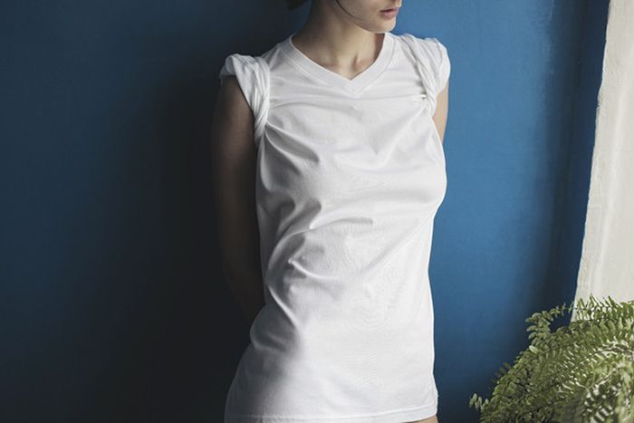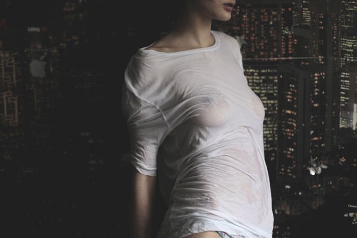Аккуратно, под футболками у женщин ничего нет, так что - это НЮ:)