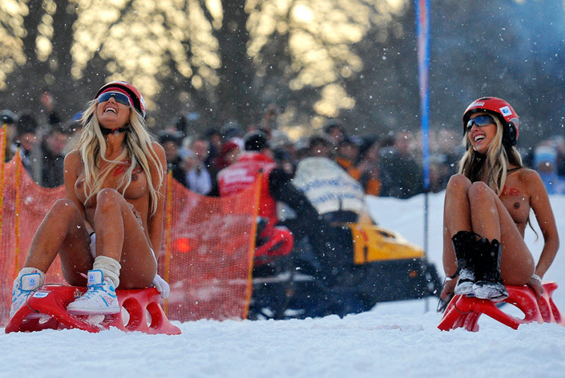 Соревнования, в каких не надо надевать форму, обнаженный футбол, регби, плавание и сани — дальше в фотогалерее.