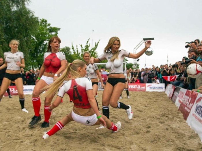 Порноактрисы из Германии сыграли в футбол со своими сотрудниками из Дании:)