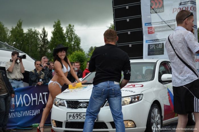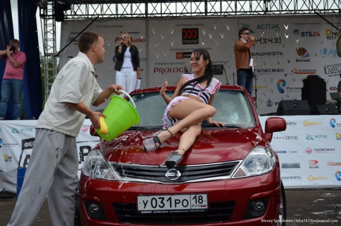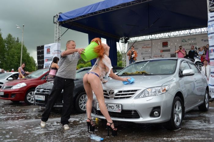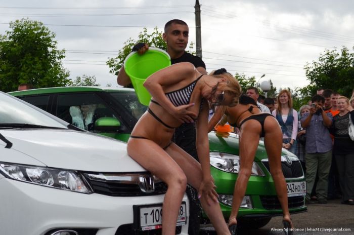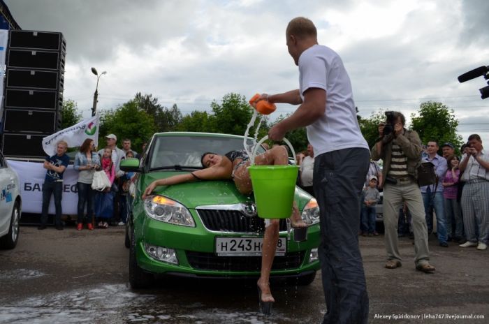 Мойка авто в бикини и конкурс "мокрых маечек"