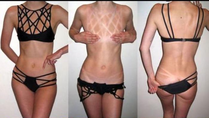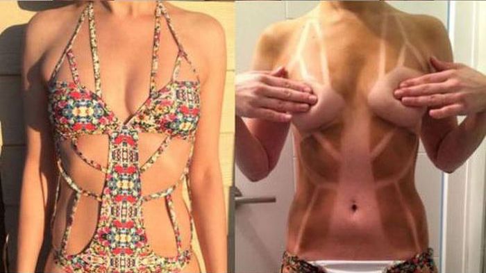 Девушки, выбирая себе новейший купальник для отдыха на море, настоятельно советую тебе остерегаться купальников сложной формы либо необыкновенного фасона. Почему?А все дело в том, что загар на вашем теле позже будет смотреться очень удивительно. Смотрим дальше на несколько примеров.