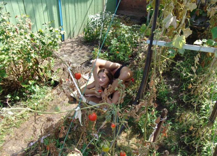 Думаю, к данной девушке выстраивается целая очередь, чтоб посодействовать ей покопать грядки;)