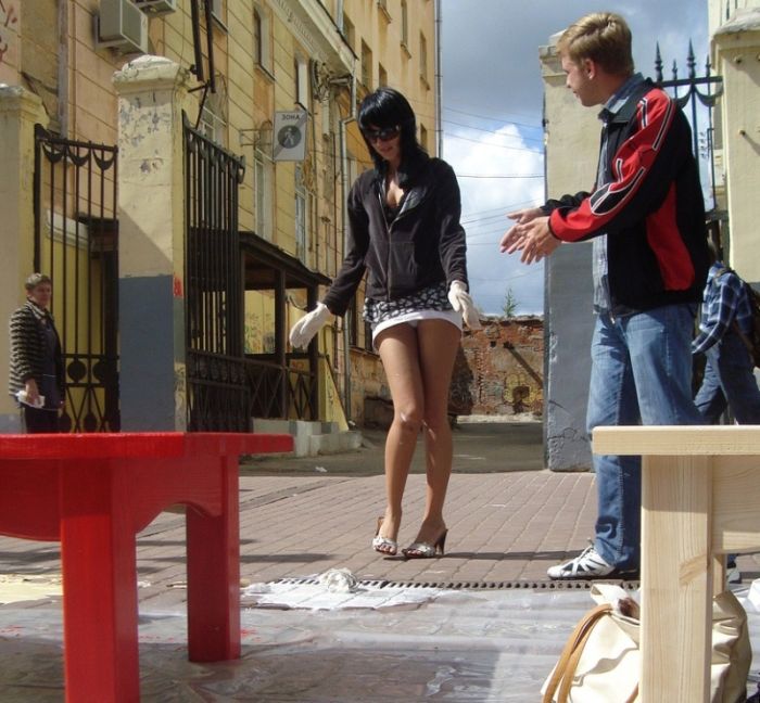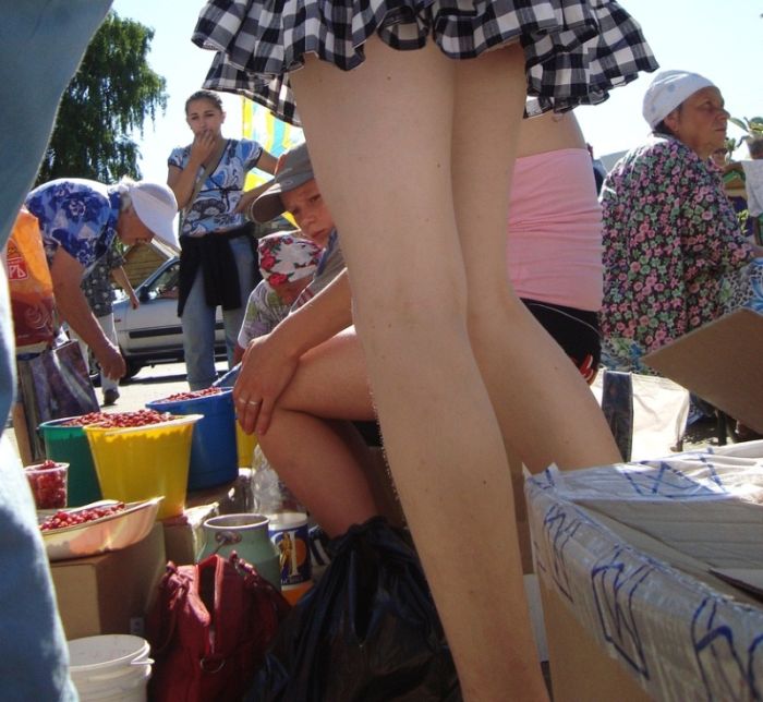 Симпатичные девушки, которые не торопясь ходят по улицам городка в мини юбках,