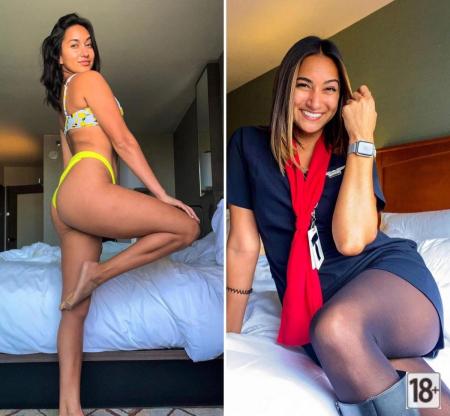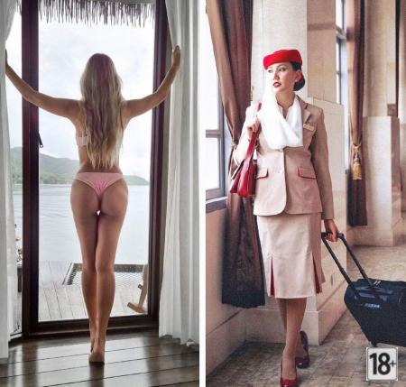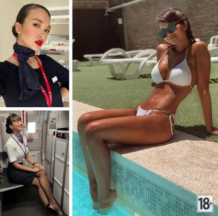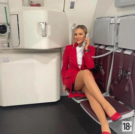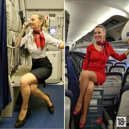 Сексапильные стюардессы, одетые в плотно прилегающие костюмы, выглядят просто восхитительно, когда делают свою работу. Их движения полны грации и сексуального подтекста, а каждый жест словно провоцирует. Воздух в салоне кажется густым от тлеющего желания, и невозможно отвести взгляд.