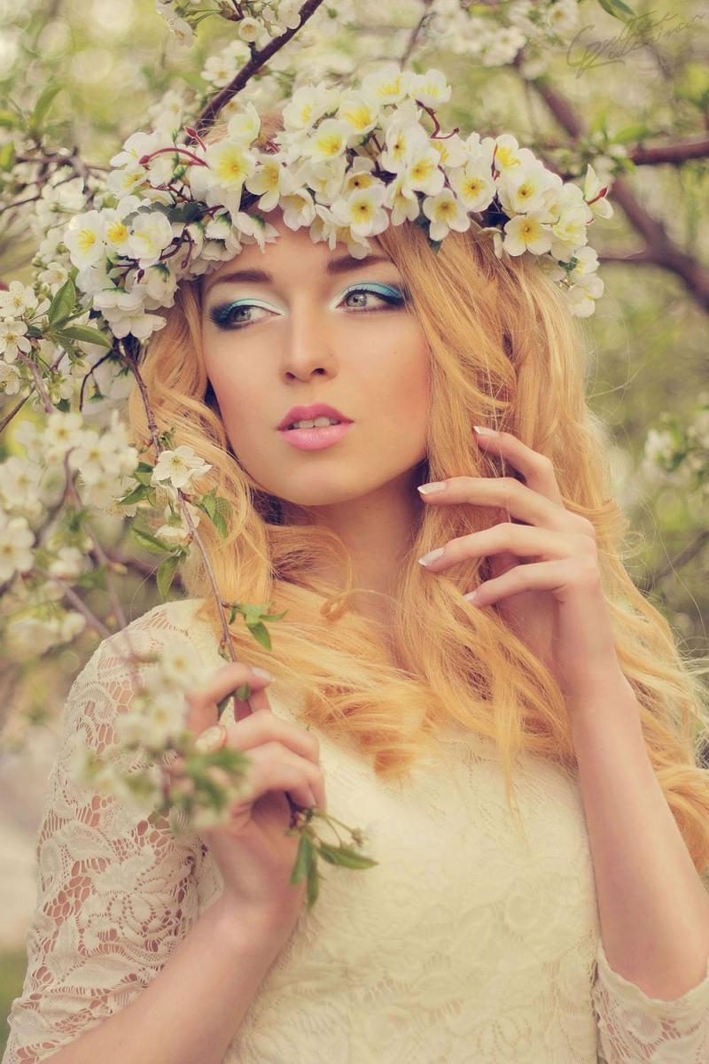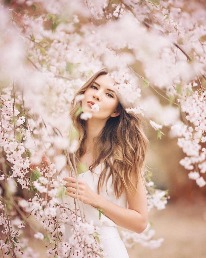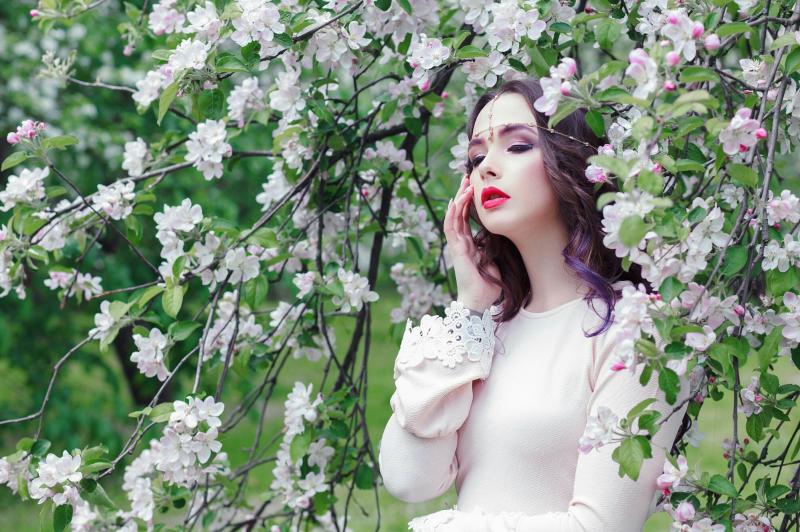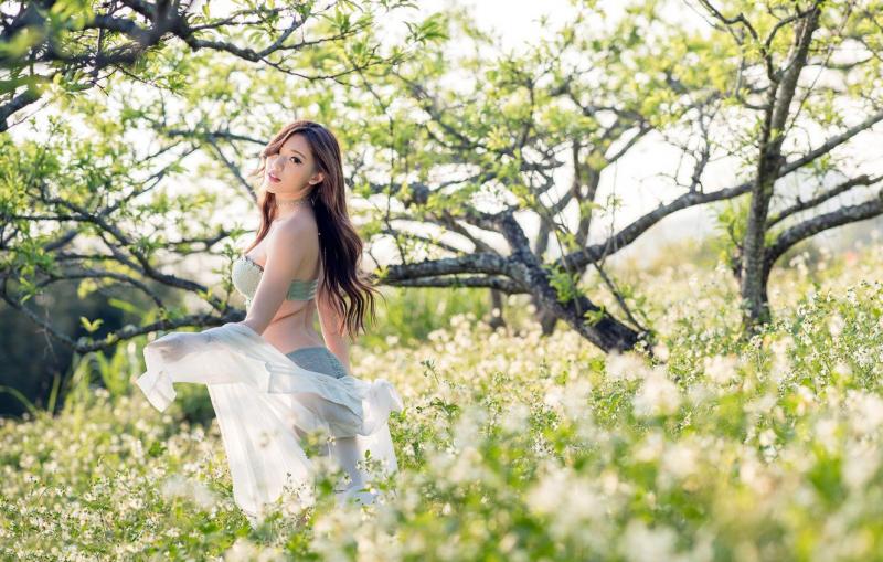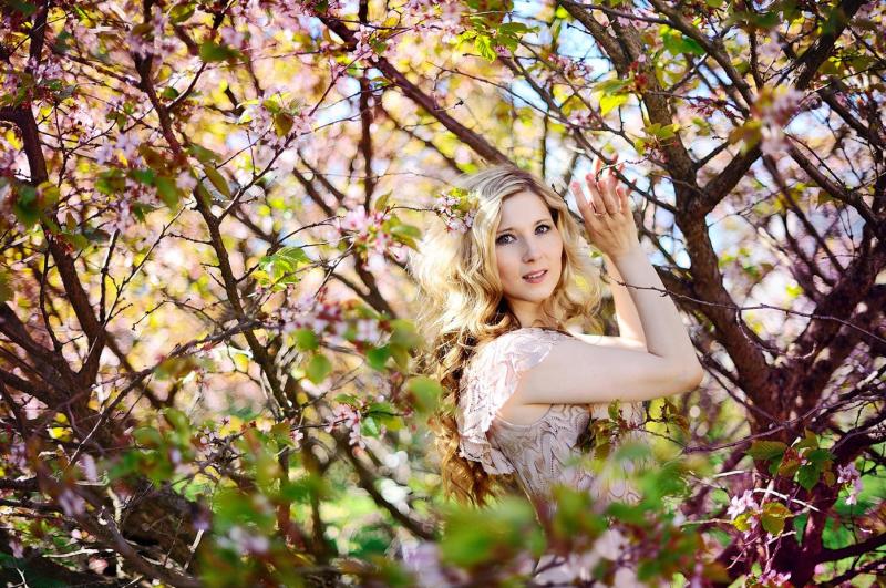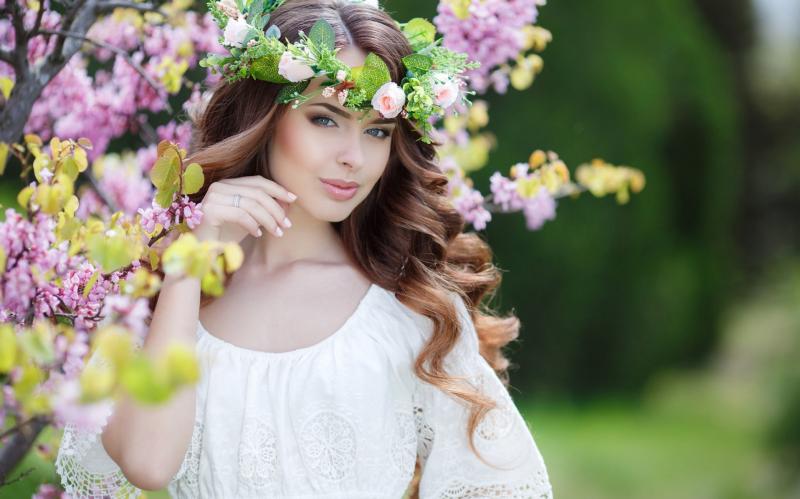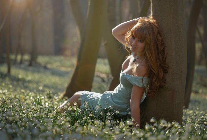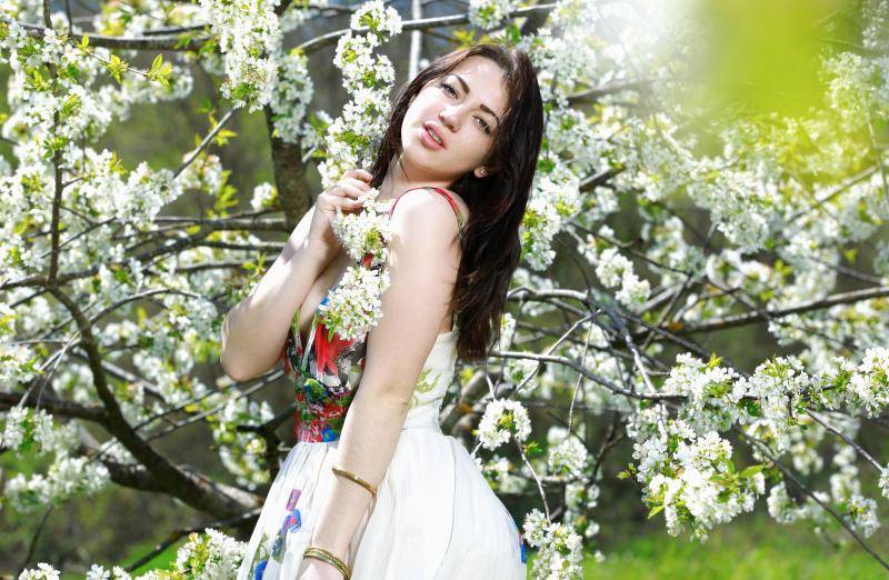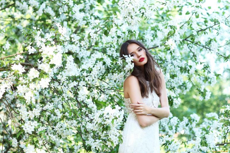 Девушка красотка с прекрасной фигурой в весеннюю пору