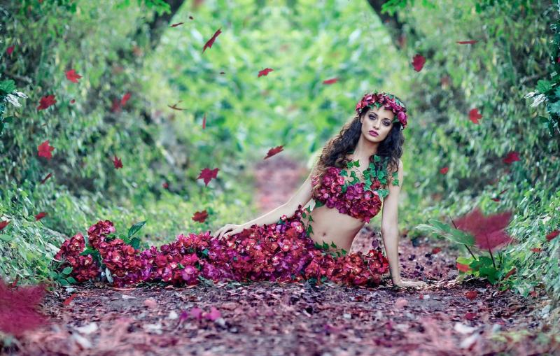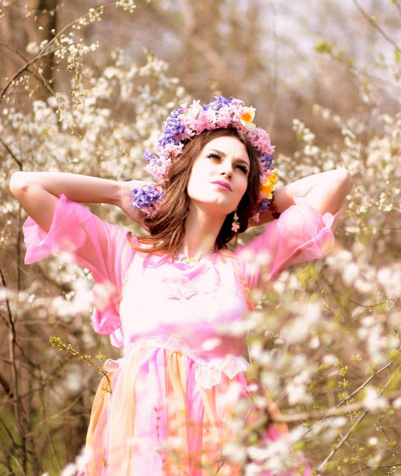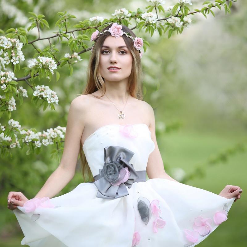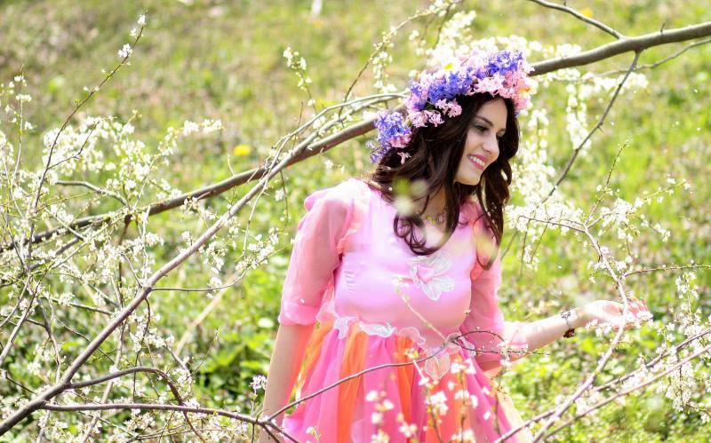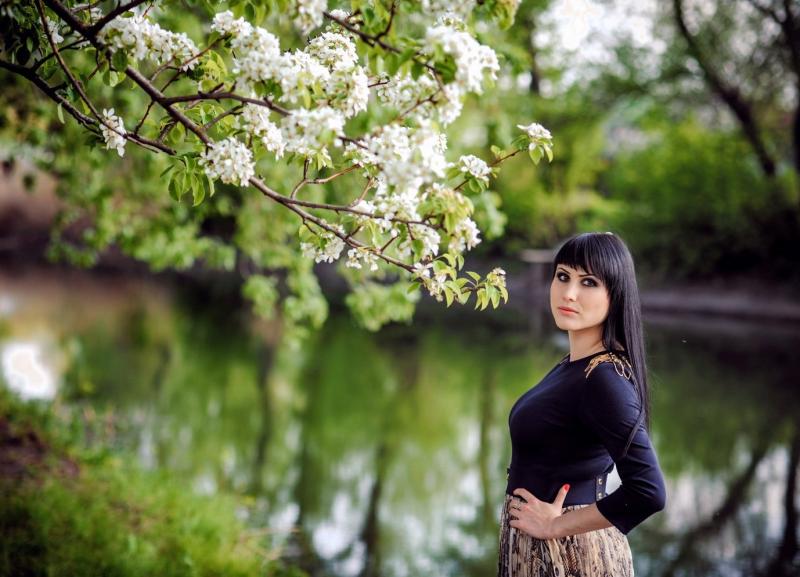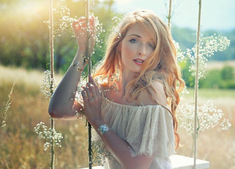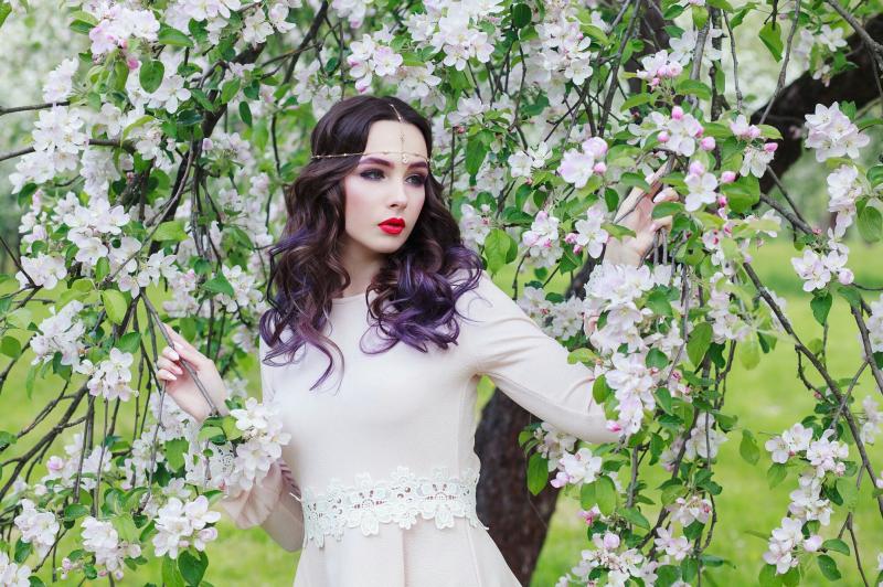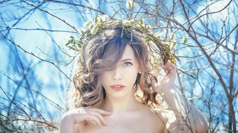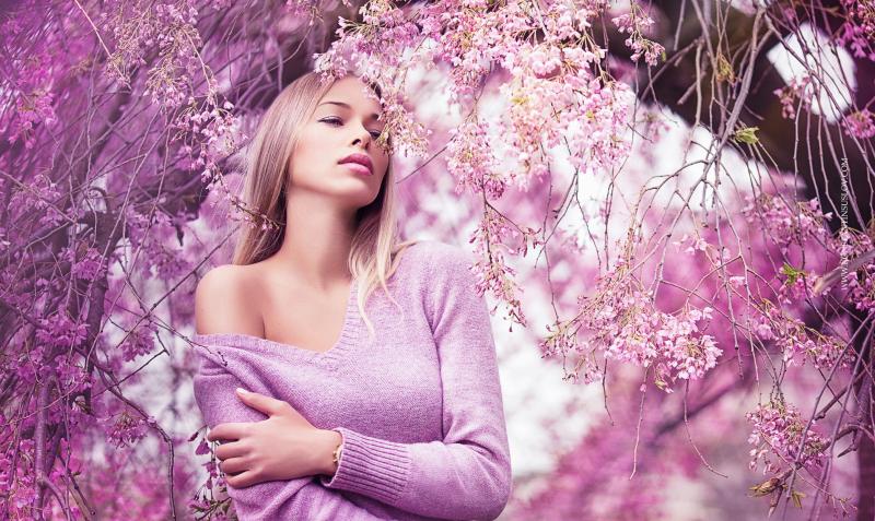 Девушка красотка с прекрасной фигурой в весеннюю пору