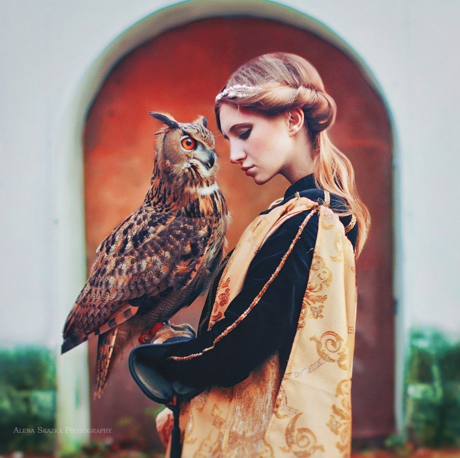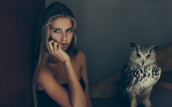 Девушка красотка и Филин птица