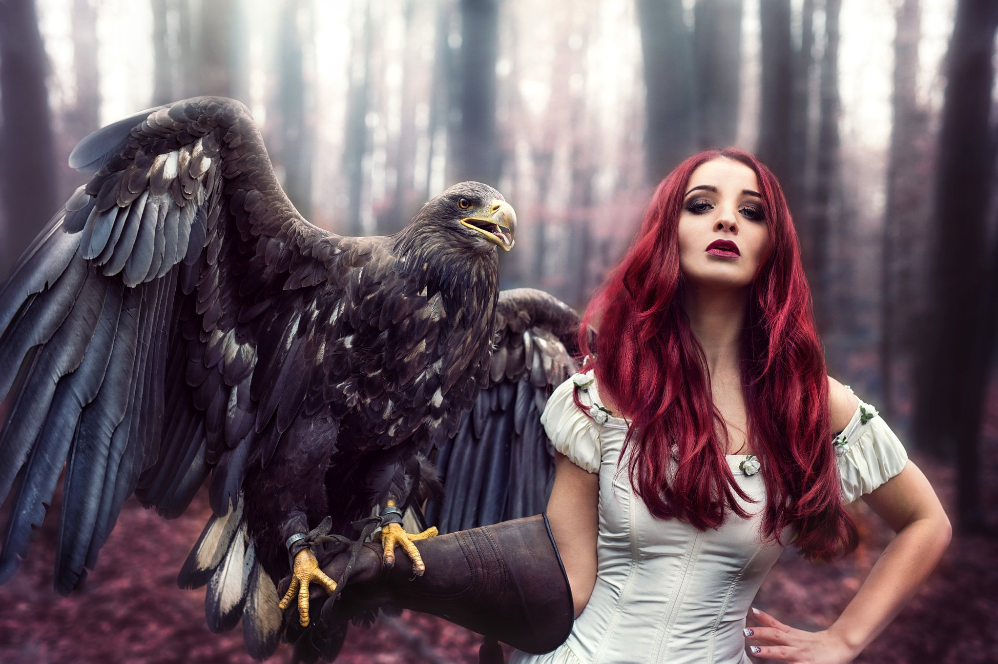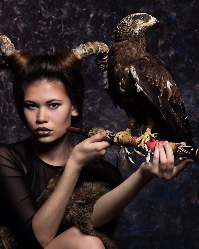 Девушка красотка с орлом фотосессия