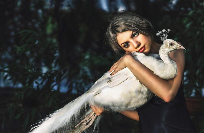 Девушка красотка и птица фото