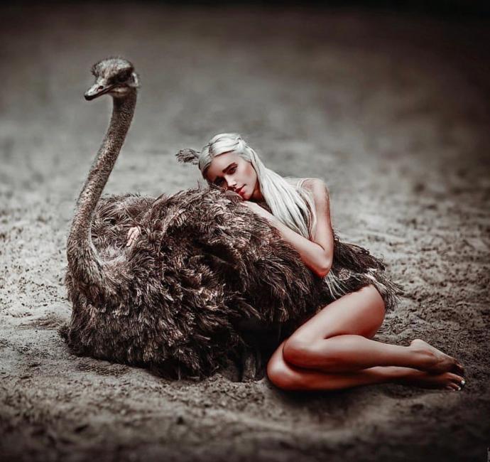 Девушка красотка на страусе фото