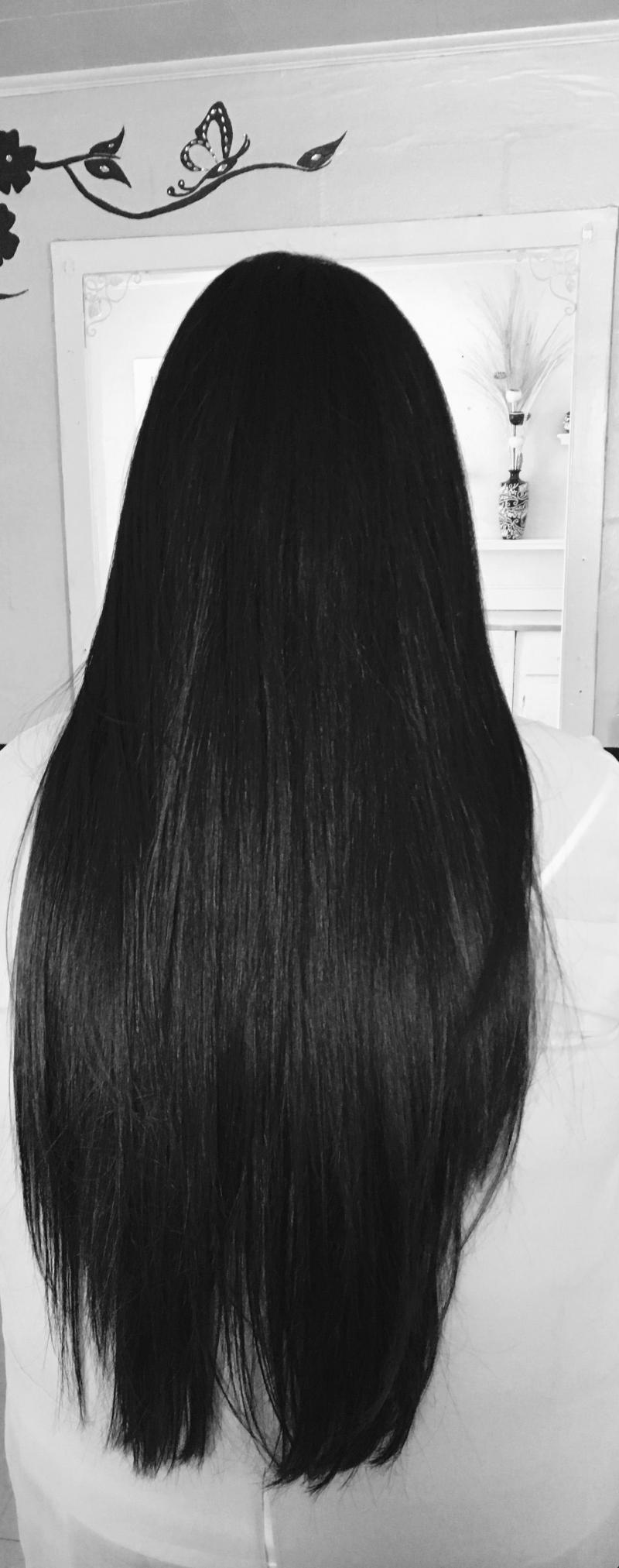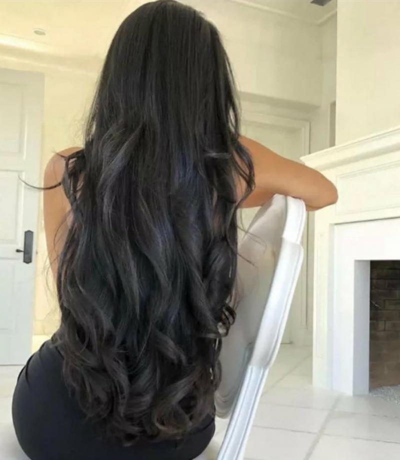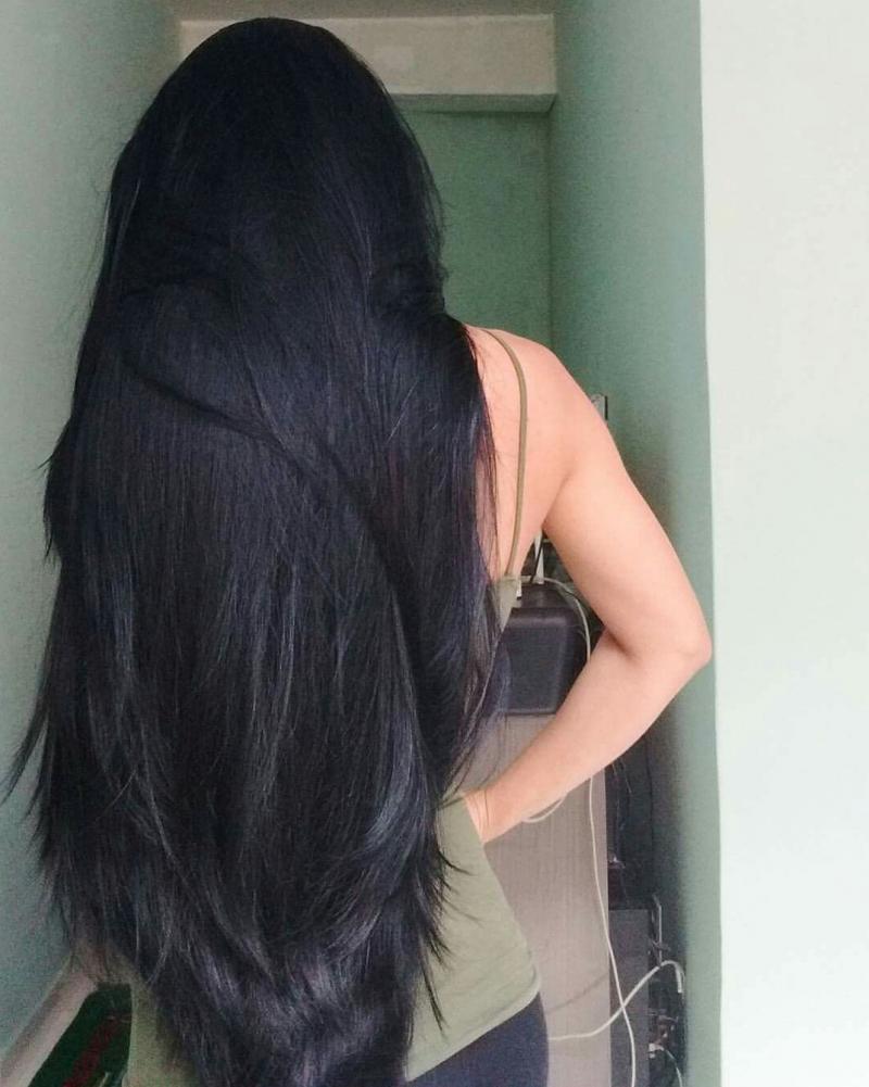 Длинные темные волосы со спины