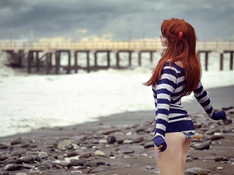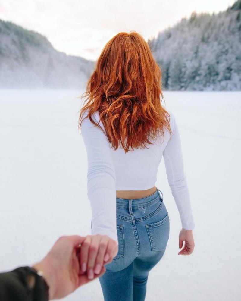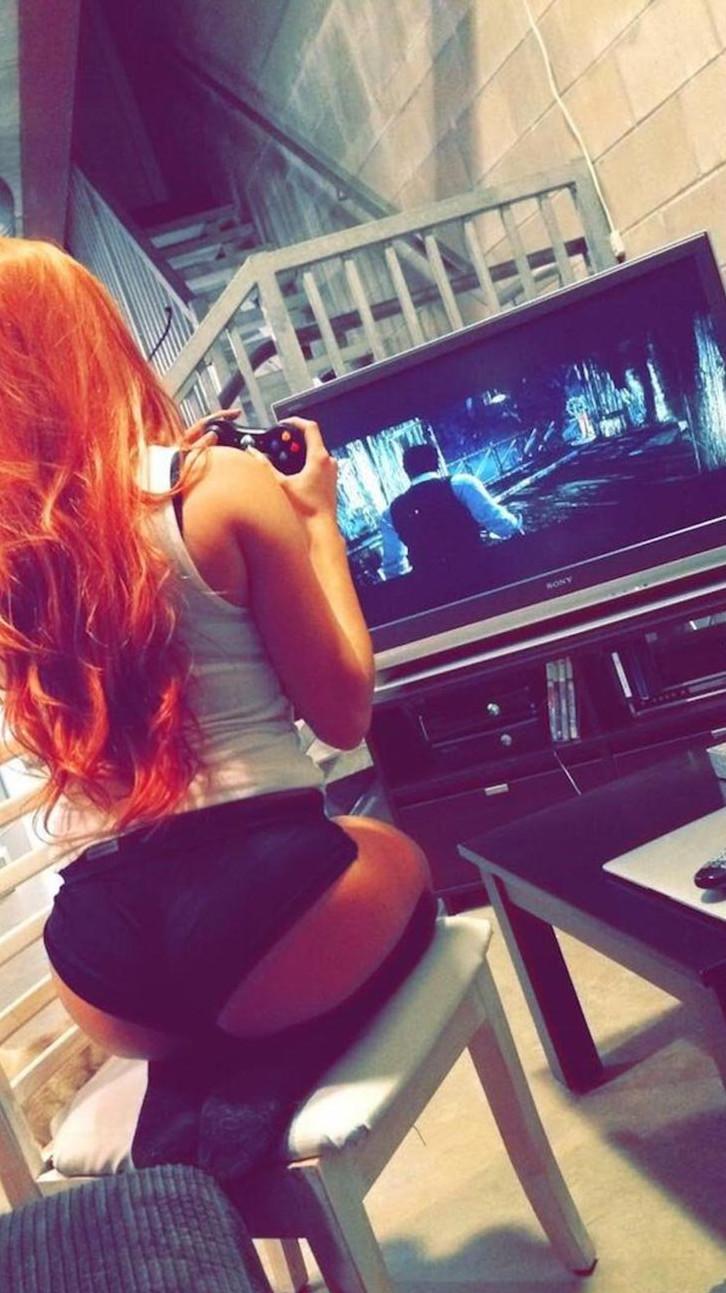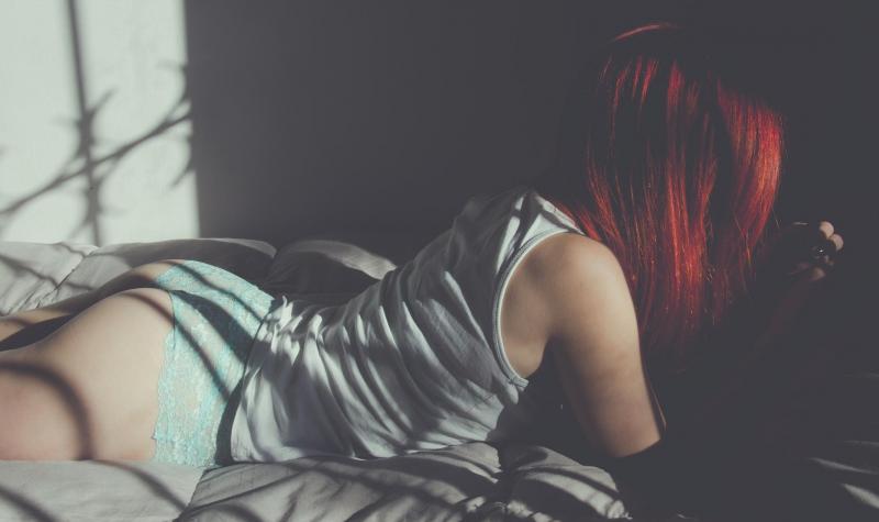 Очень сексуальная рыжая девушка красотка в в лифчике