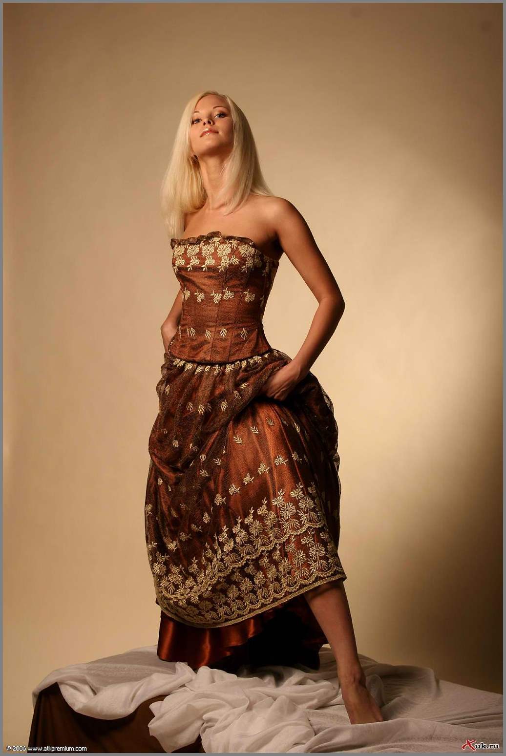 Тихо поскрипывает кроватка под ножками блондинки, когда та наступает босыми ступнями. женщина укуталась в платье, но она без трусов! И с голой писей киска танцует в постели очень красиво. У нее сексуальные ноги, ягодицы, бедра. В полутьме создается эротичный образ.