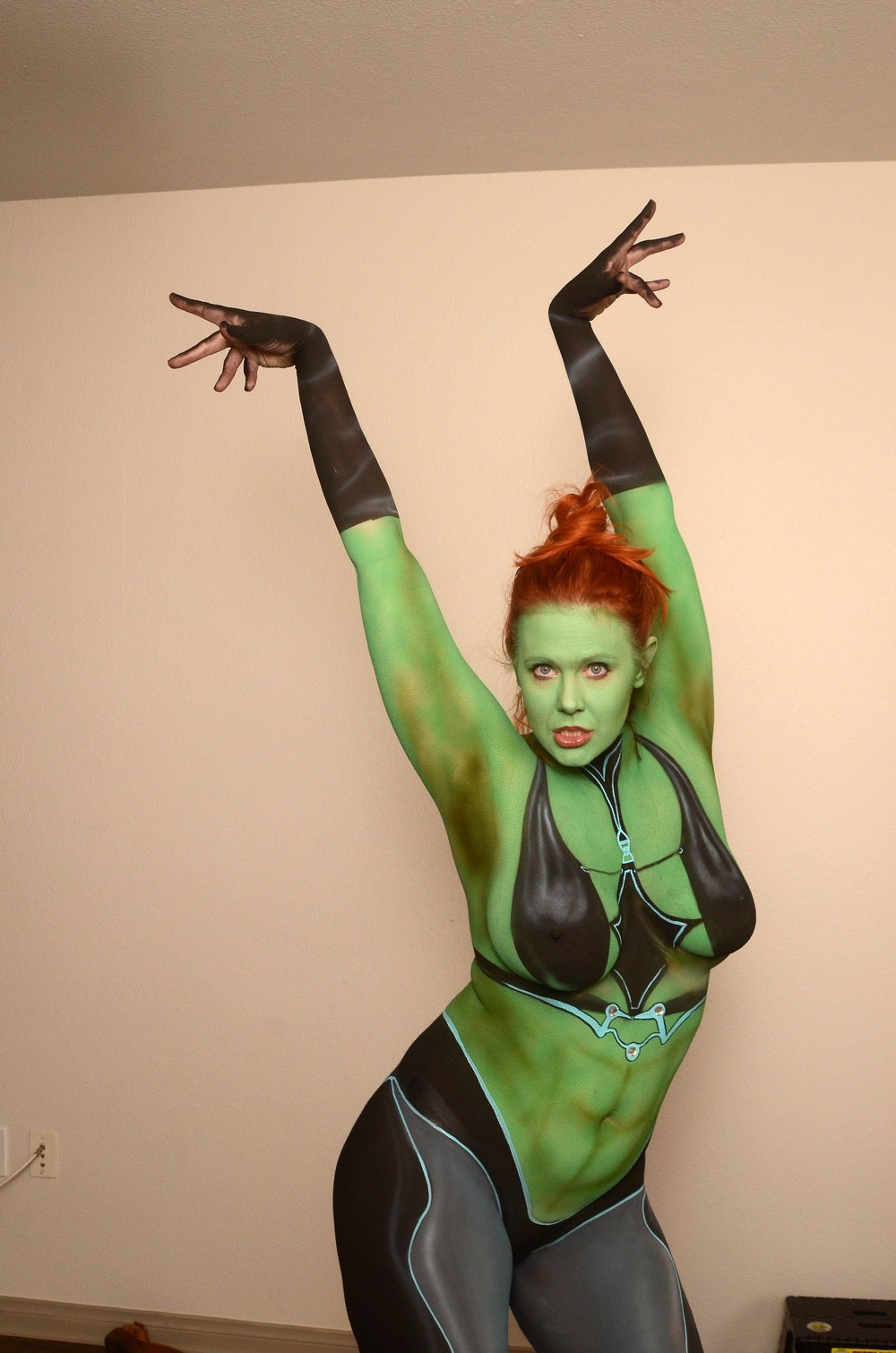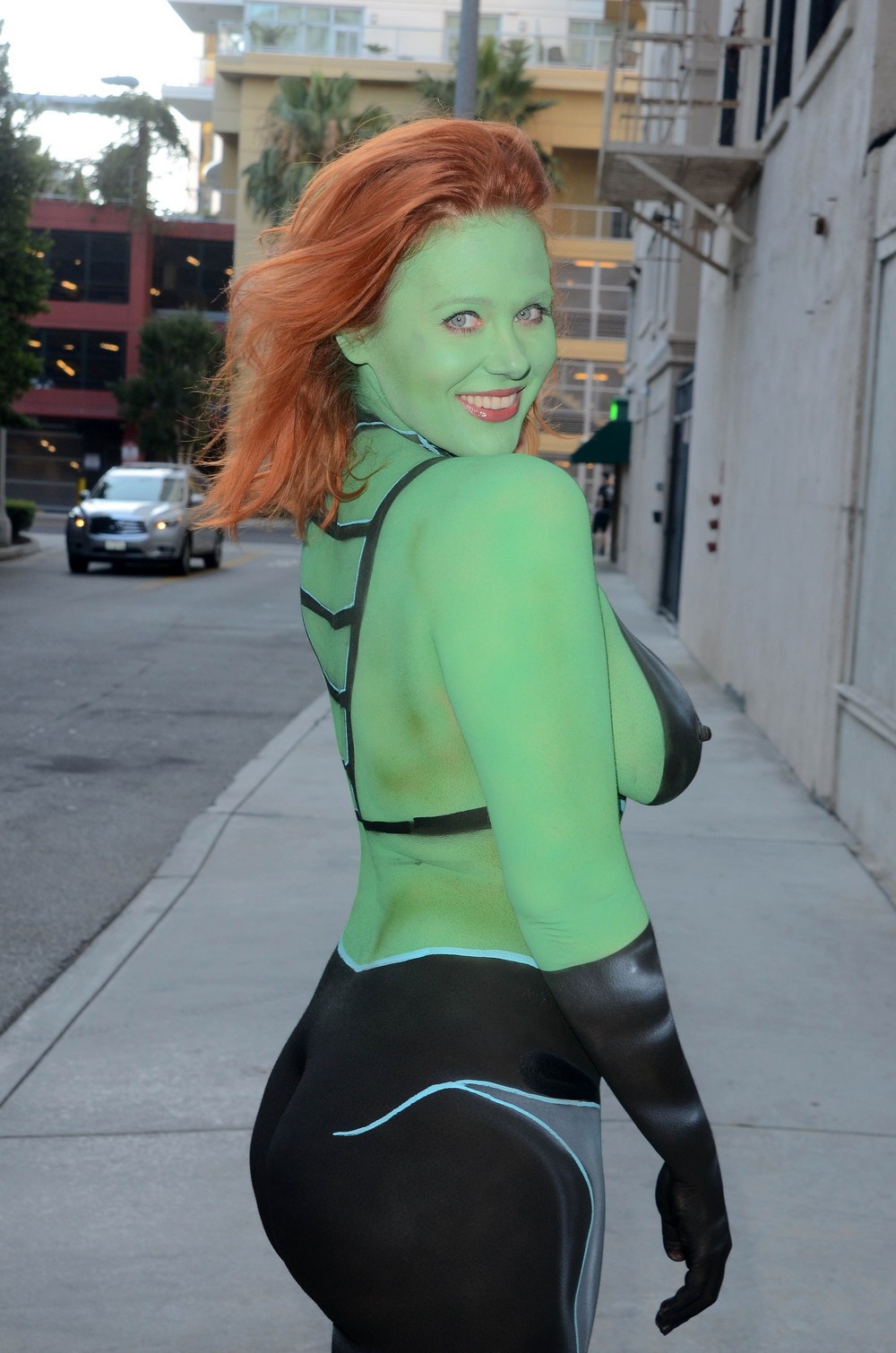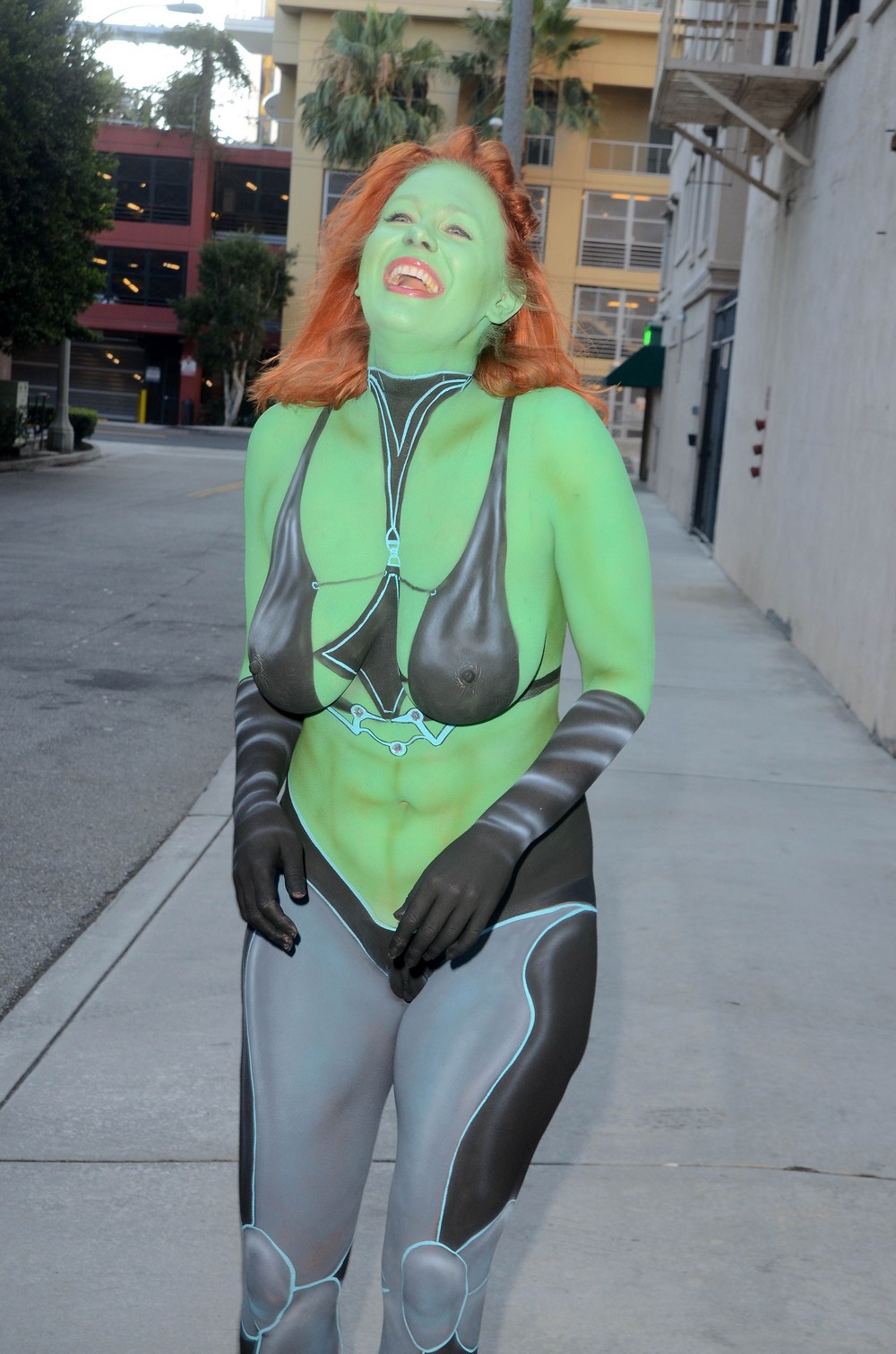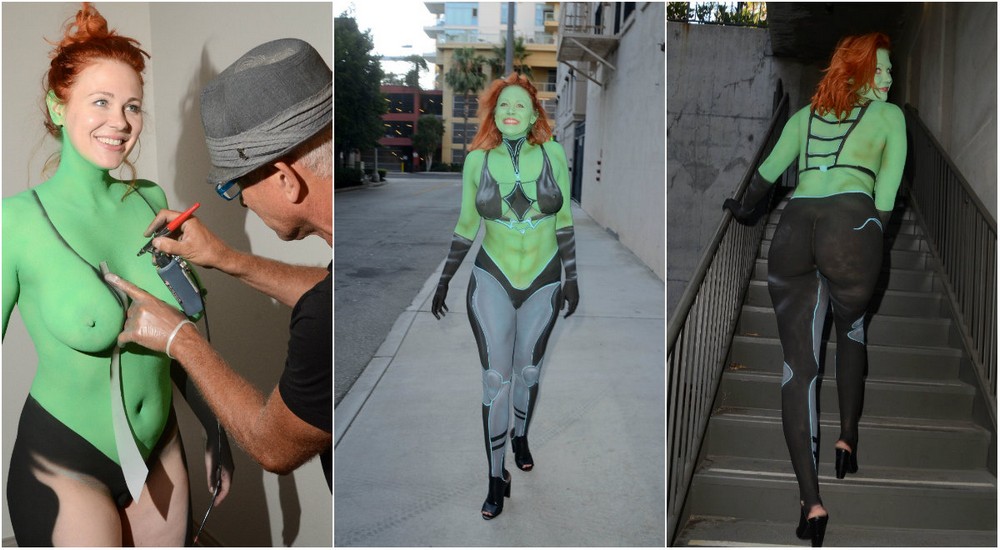 40-летняя американская актриса Мейтленд Уорд (Maitland Ward) решила не заморачиваться с костюмам на Comic-con в Сан-Диего и нарисовала его на своем обнаженном теле.