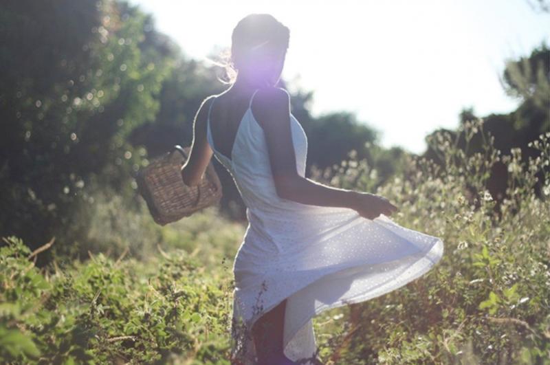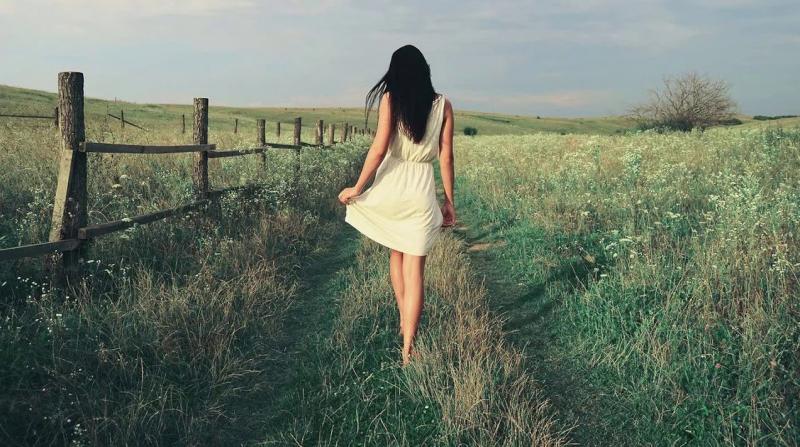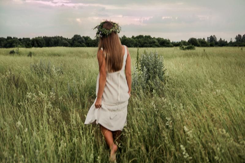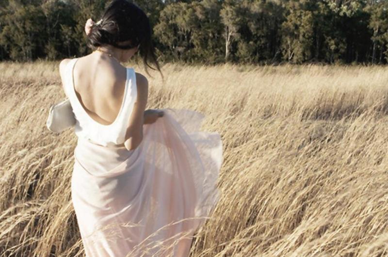 Фото девушки в поле со спины в платьях