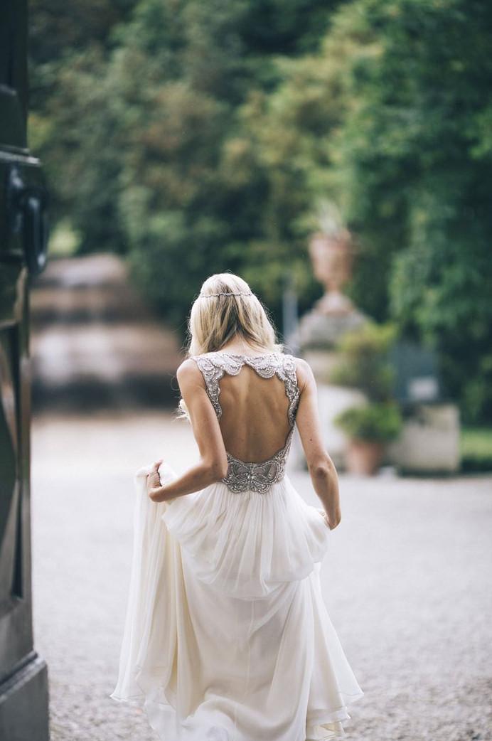 Девушка красотка в белоснежном платье со спины