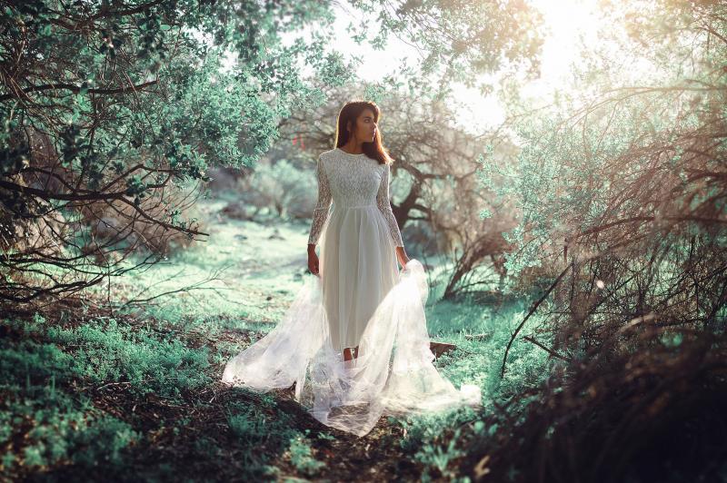 Фотосессия в лесу в белоснежном платье