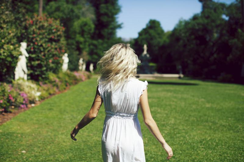 Блондинка на природе со спины