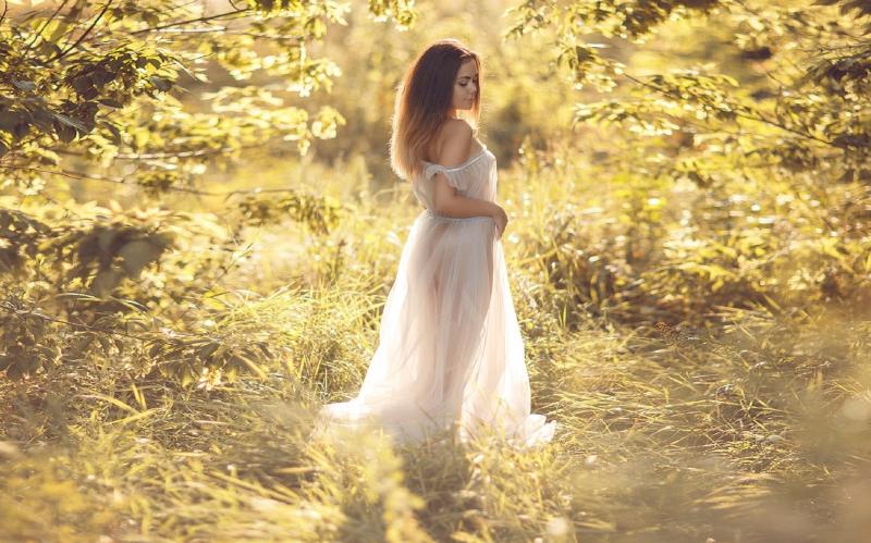 Фотосессия в длинноватом платье на природе в летнюю пору