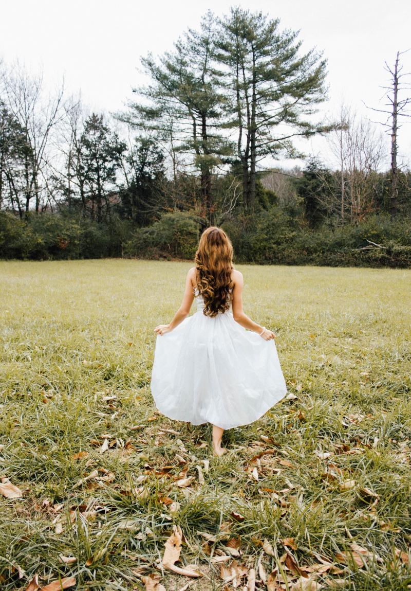 Фото девушки сзаду в поле в платье
