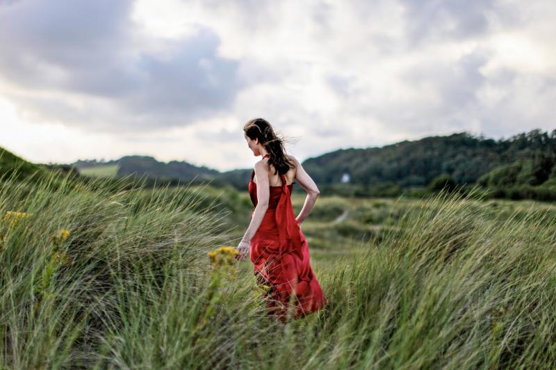 Фотосессия в длинноватом платье на природе