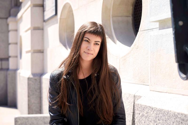 Фото девушки брюнетки с длинноватыми волосами в поле