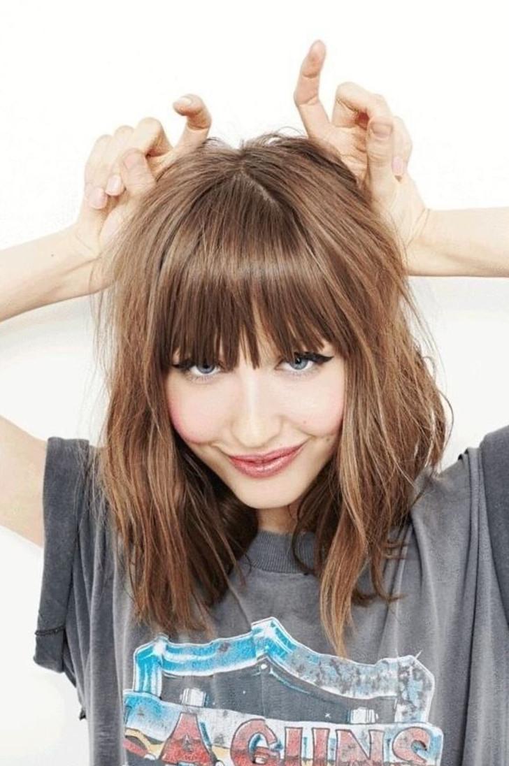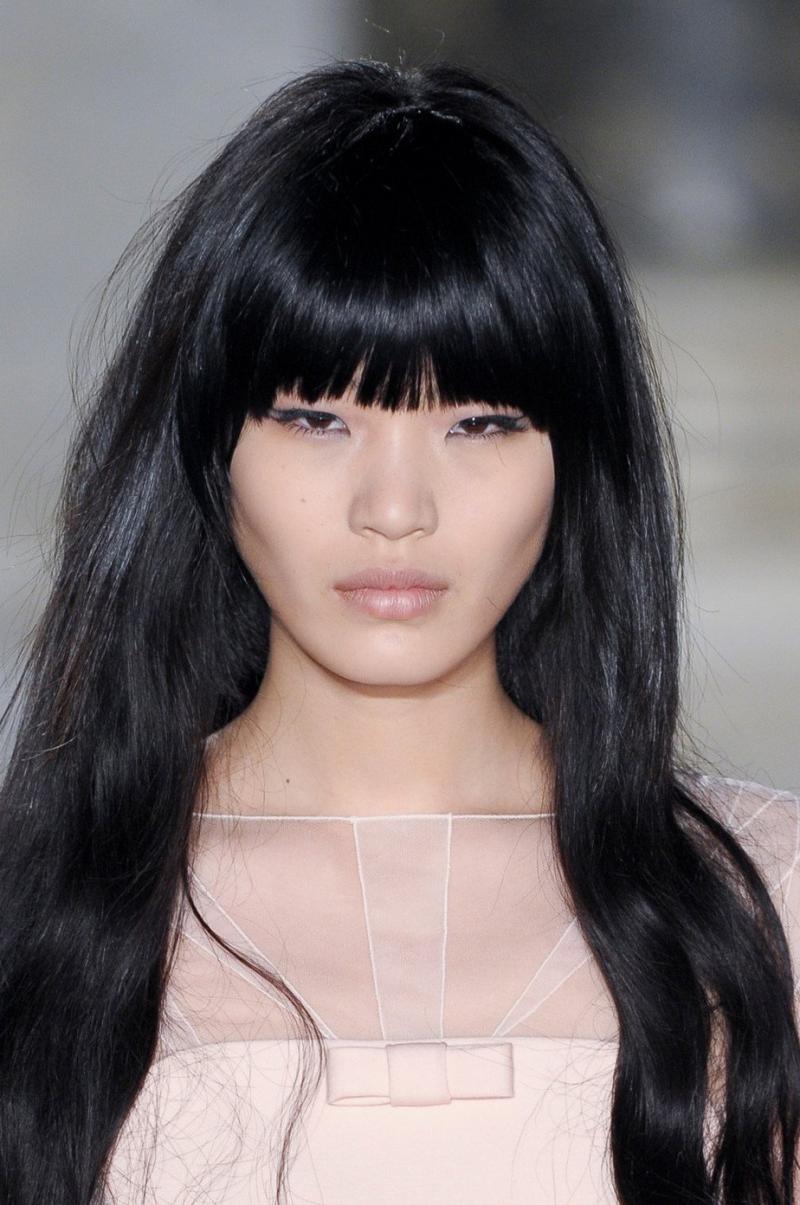 Очаровательные девушки брюнетки с длинноватыми волосами и челкой фото