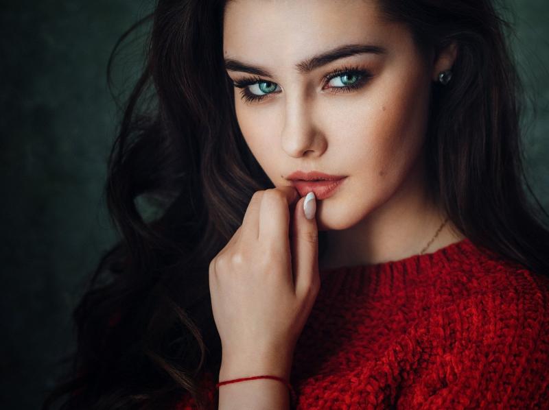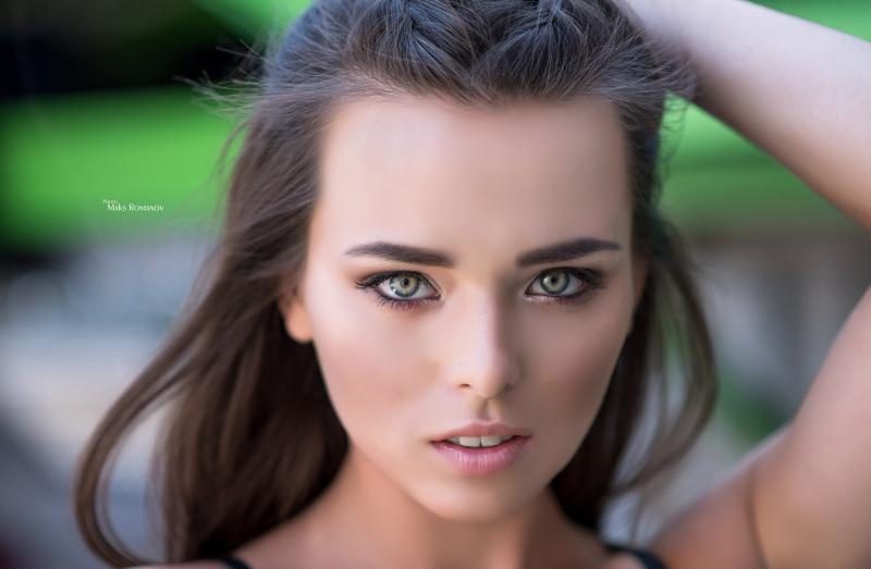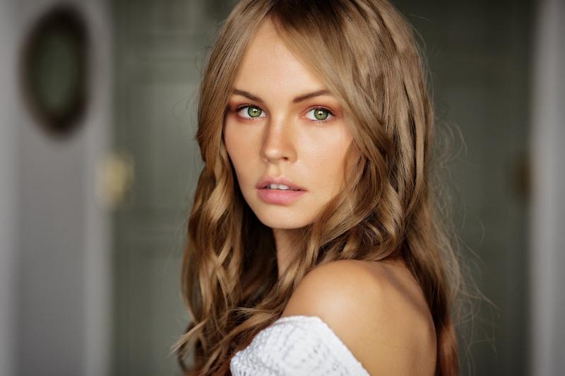 Девушка красотка с русыми волосами и зеленоватыми очами