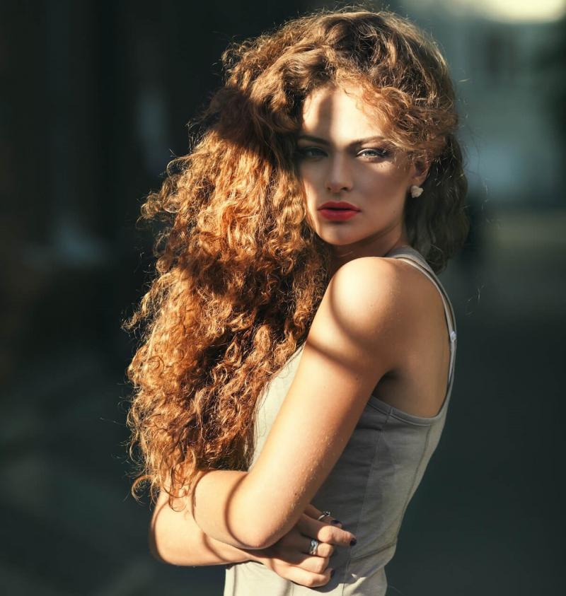 Шатенка с кудрявыми волосами