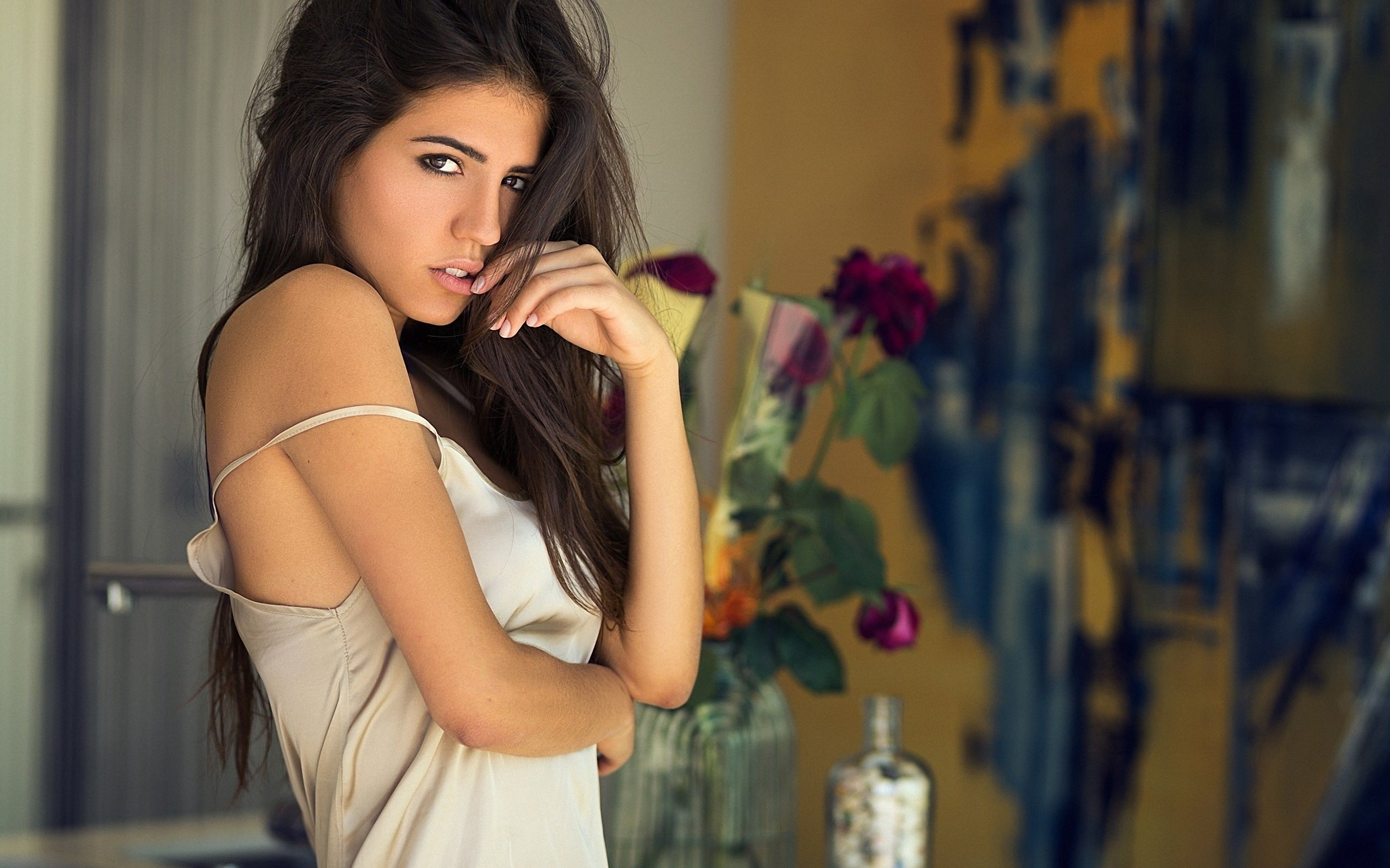 Очаровательные брюнетки с цветами