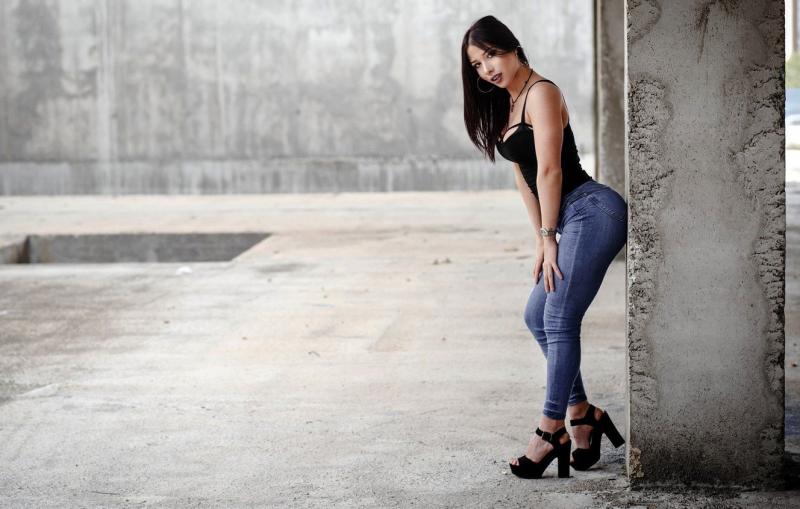 Очень сексуальная брюнетка в джинсах