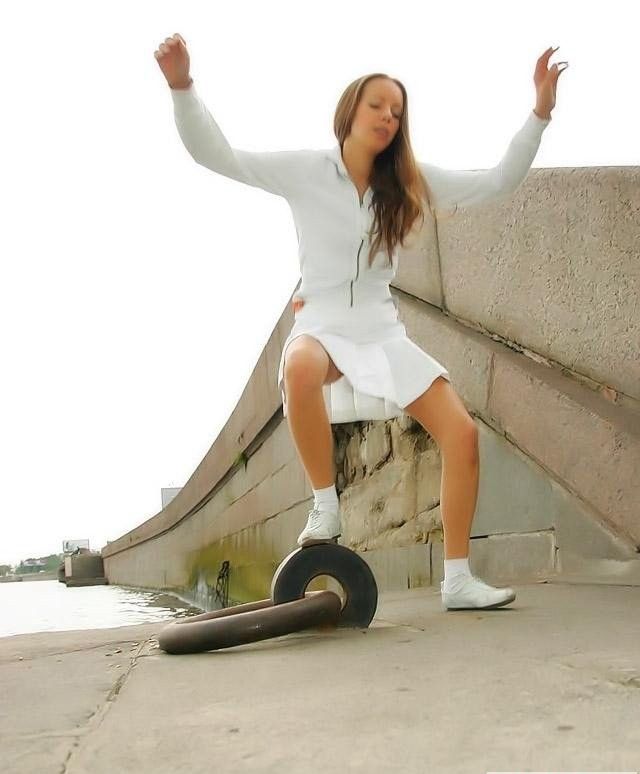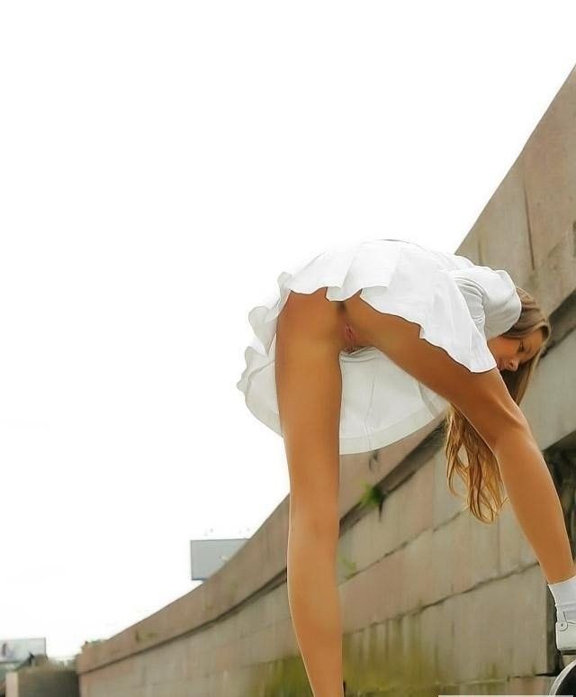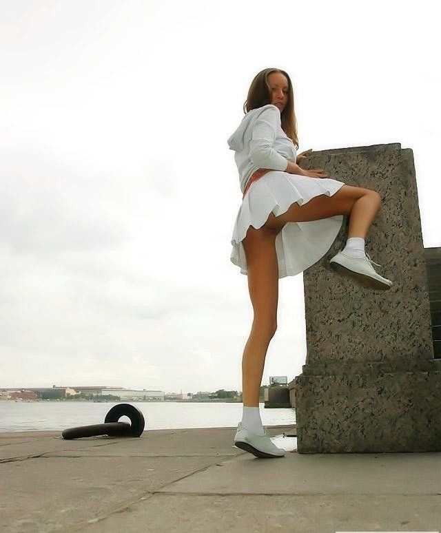 Даму в недлинной белоснежной юбке засняли на камеру как она гуляла по городку без трусиков. На фото можно узреть ее упругую небольшую жопу, утонченные ноги, а также гладко побритую пиздятинку. Судя по тому, как женщина на фото закидывает свои длинные ноги, то видимо она носительница хорошей растяжки. Выражение ее лица говорит о том, что она страстная и авантюрная натура. Фото женщина сама выложила в вебе, чтоб повытрепываться всем, как она ходит по улицам собственного городка в мини юбке и без трусиков под ней.