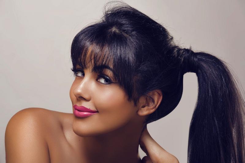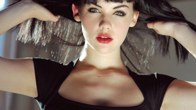 Очень сексуальные девушки с челкой и длинноватым волосом