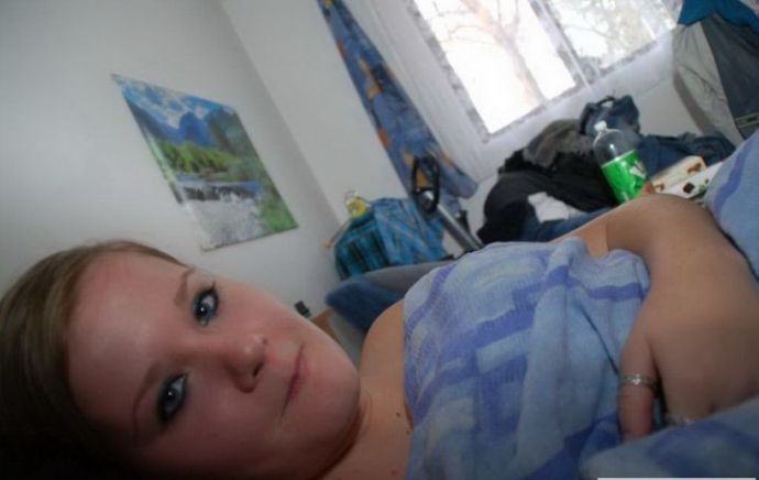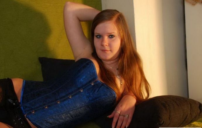 Голубий корсет и чёрные чулки отлично подчёркивают соблазнительные формы. Судя по аппетитной ухмылке, девушка ласковая и отдаётся с наслаждением. И позы воспринимает очень сексапильные!
