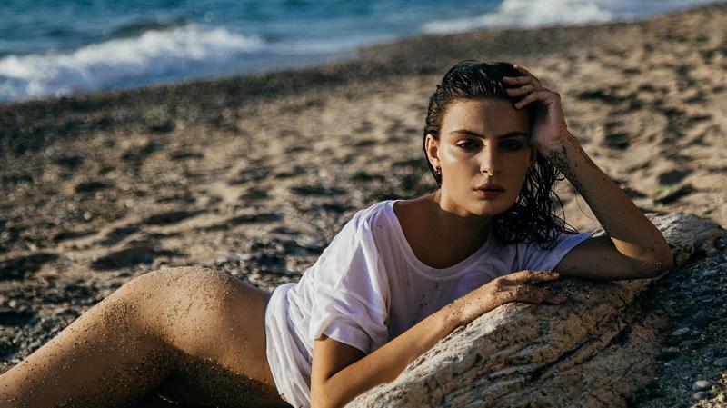 Обнаженная девушка красотка на берегу моря