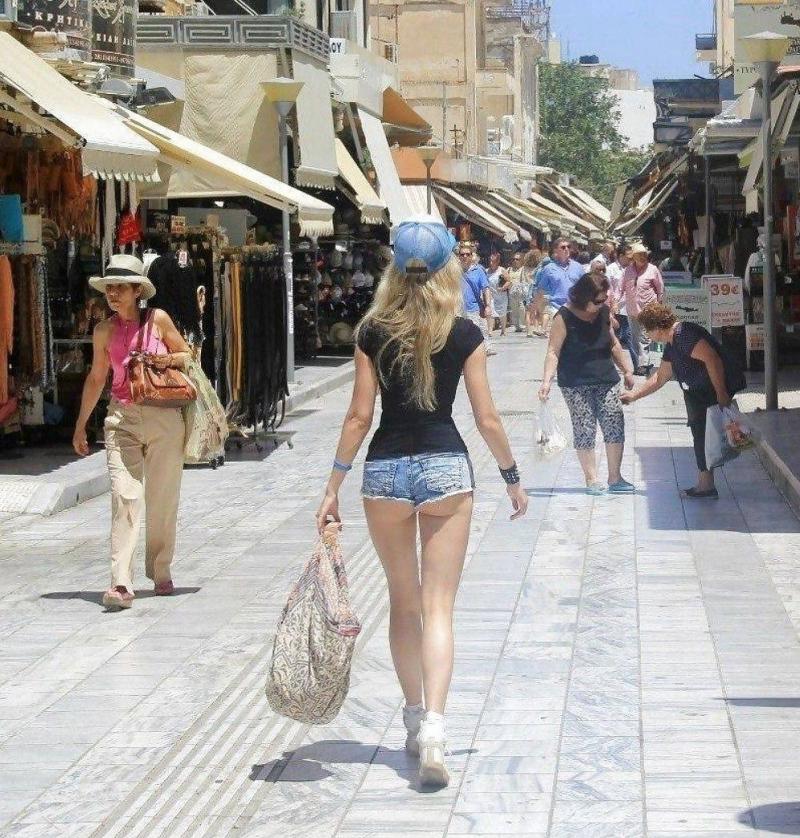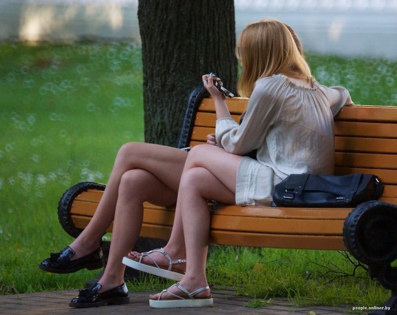 Девушки в летнюю пору в жару на улице