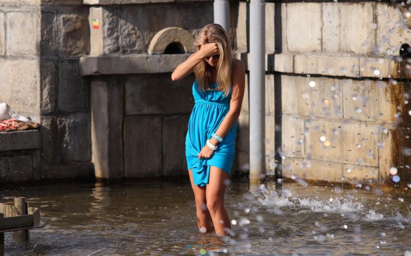 Девушка красотка и струя воды