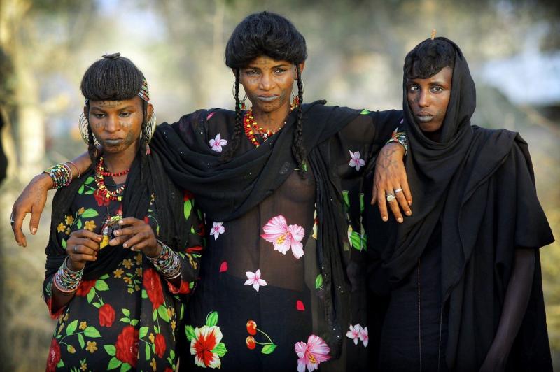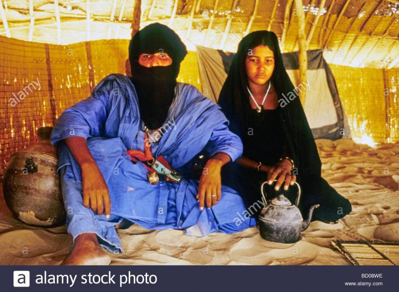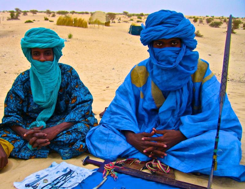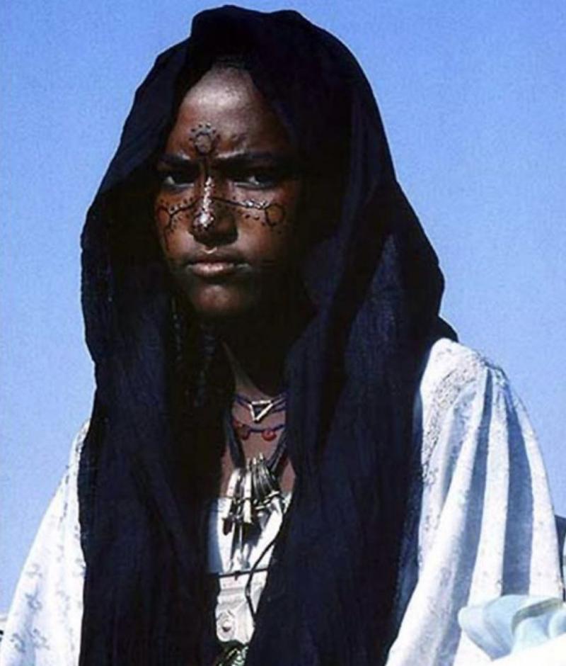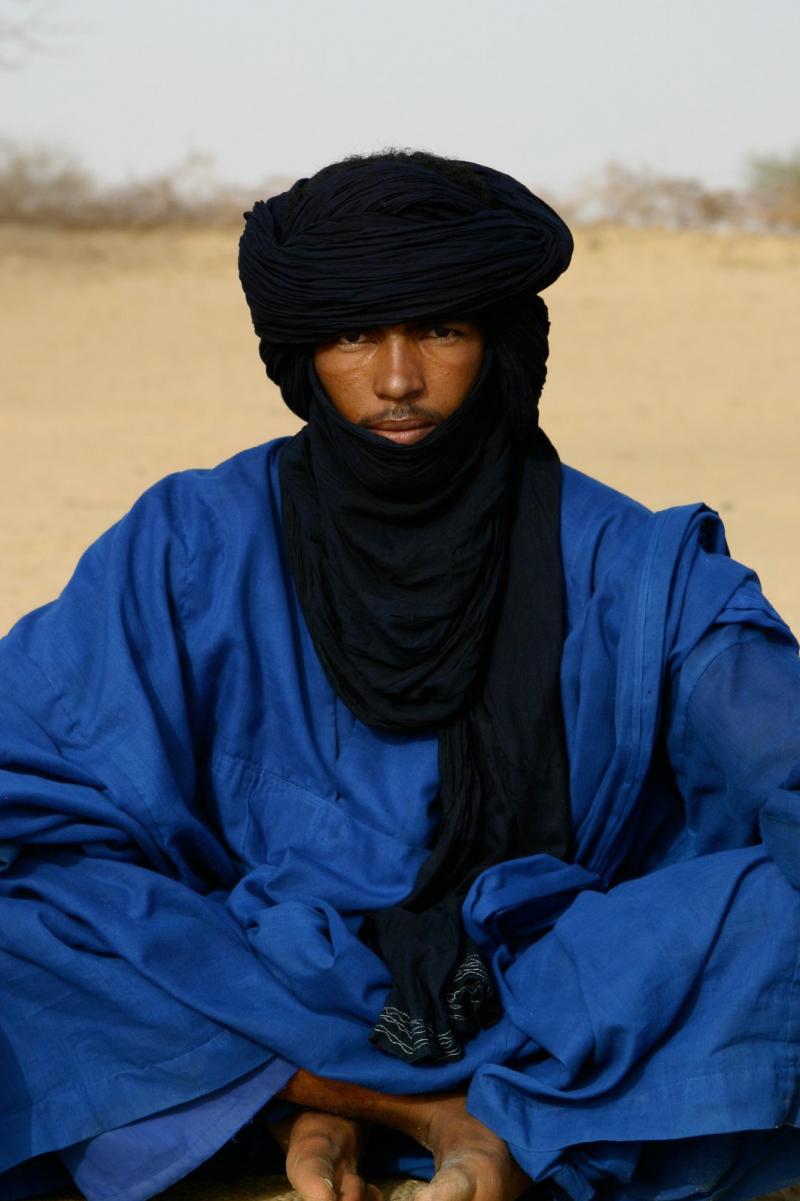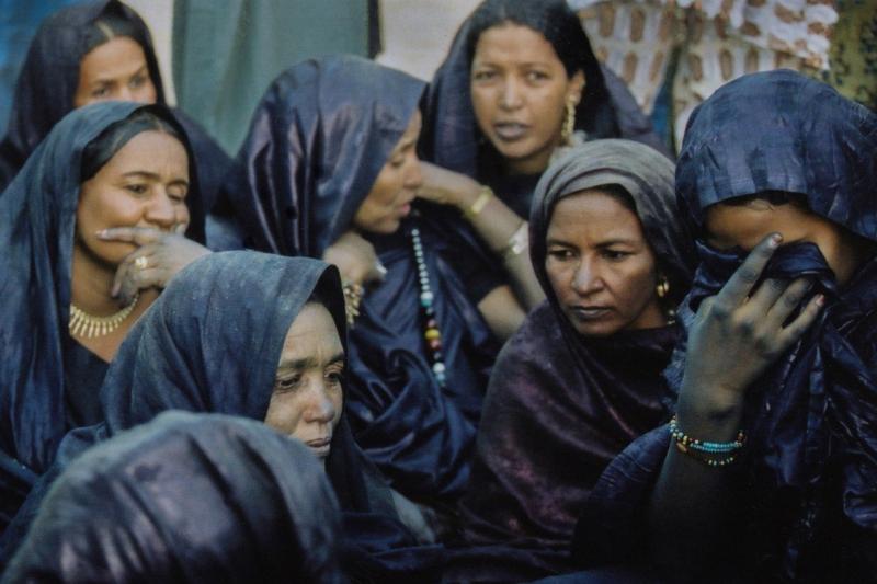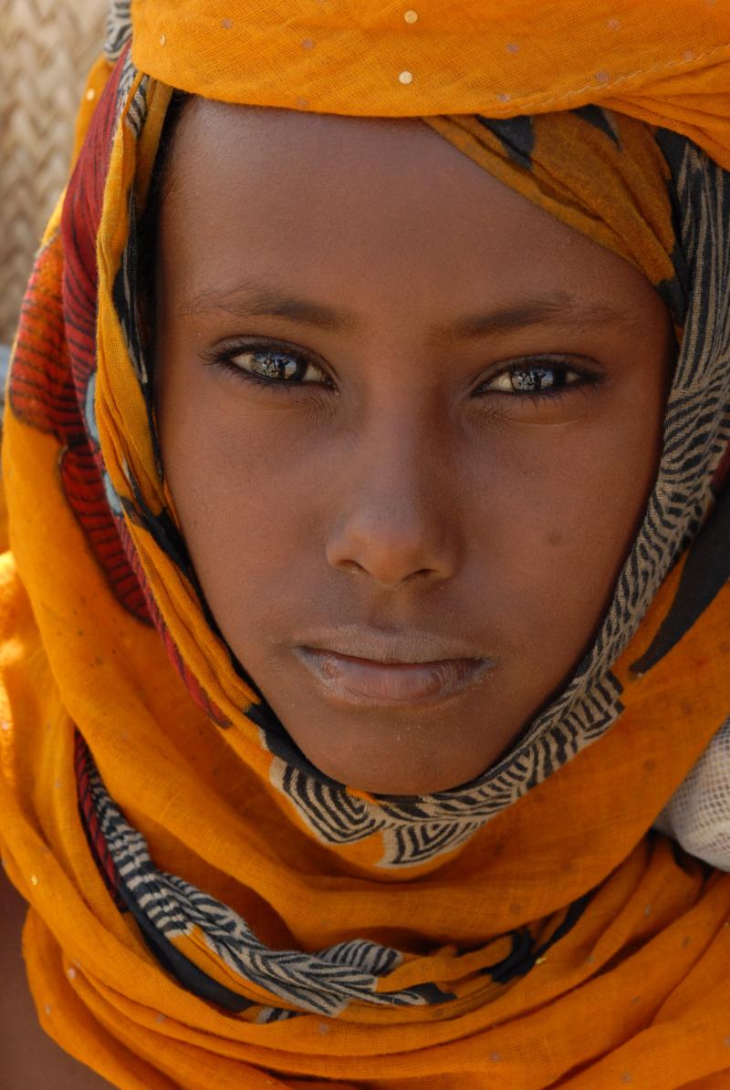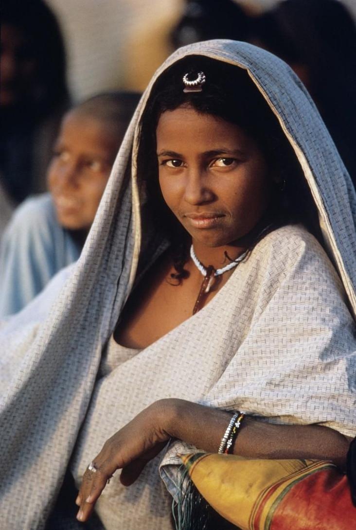 Африканка в длинных одеяниях с верблюдом в пустыне