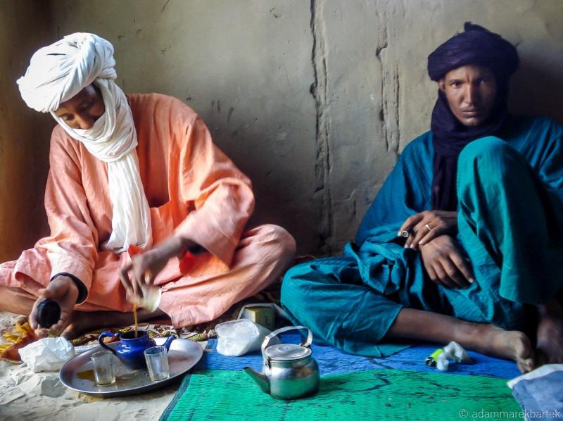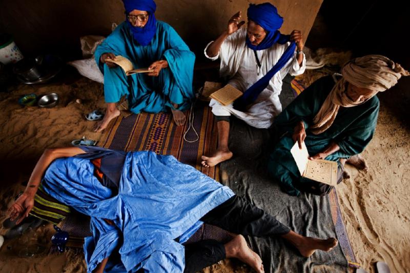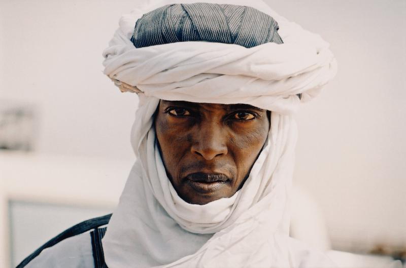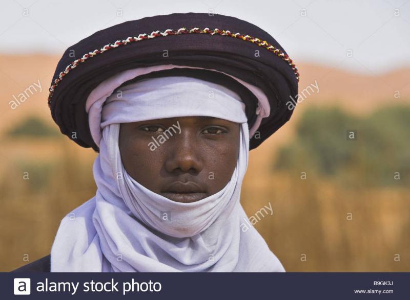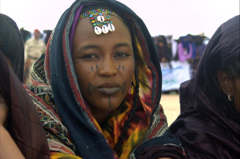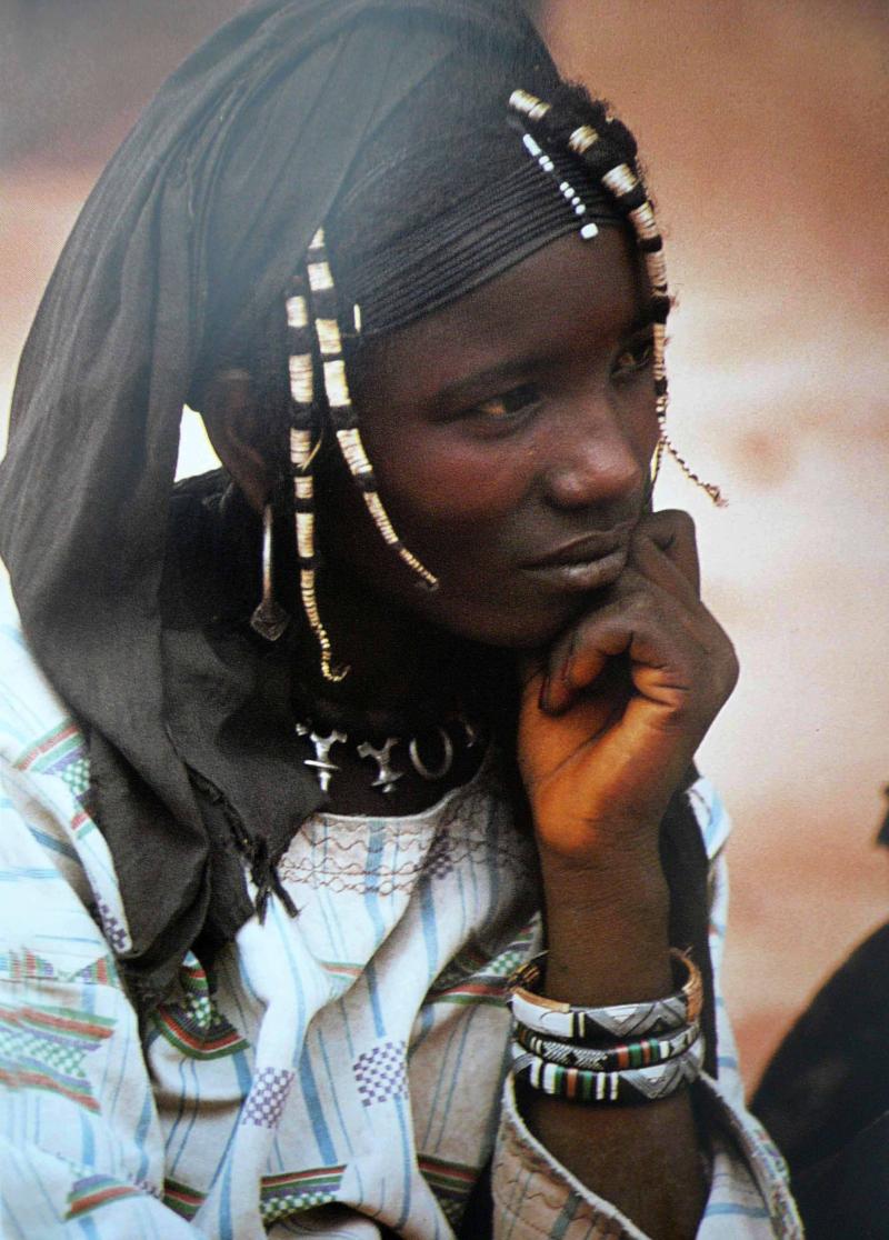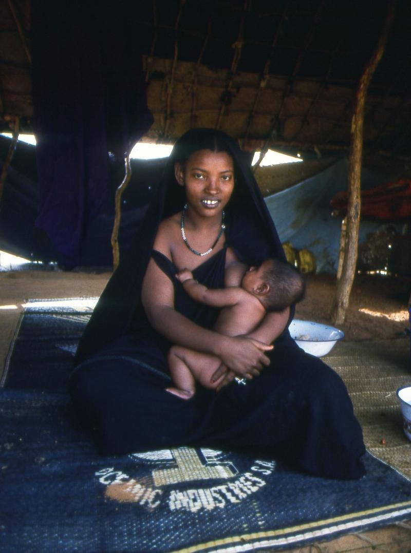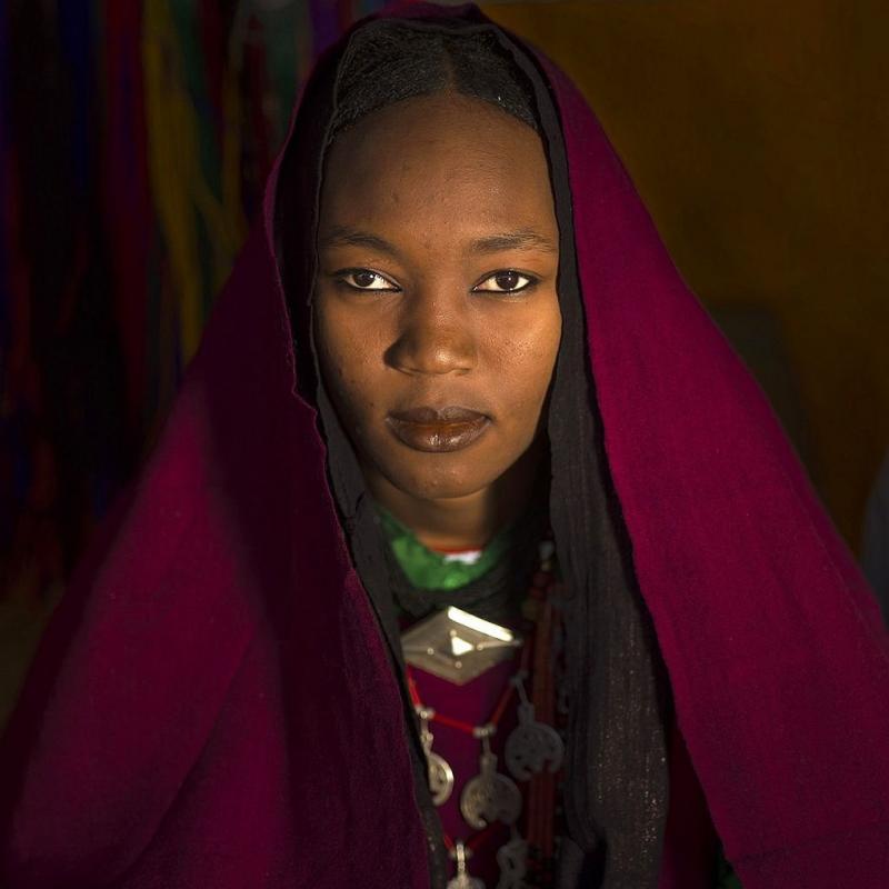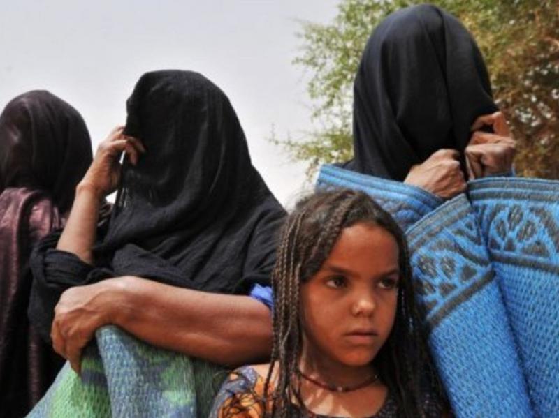 Африканка в длинных одеяниях с верблюдом в пустыне