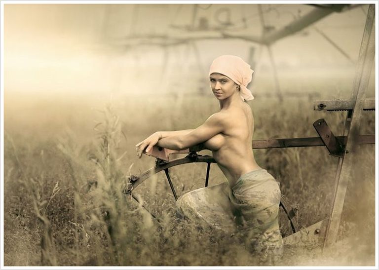 Соблазнительные сельские бабы появились на природе без одежды