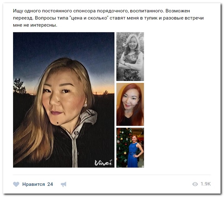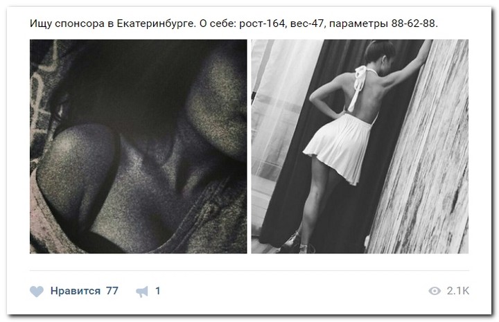 Эти наивные девушки хотят красиво жить и ничего не делать. Они надеются, что богатые спонсоры увидят их красоту, и в очередь выстроятся, предлагая свою помощь. Некоторые даже пишут, что никого интима, им должны заплатить чисто за приятное общение.