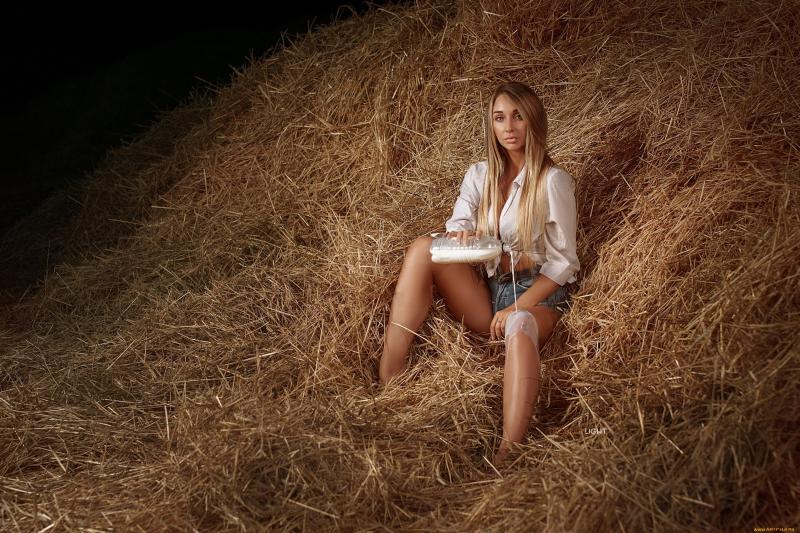 Модели в деревне Летнее настроение на сеновале.