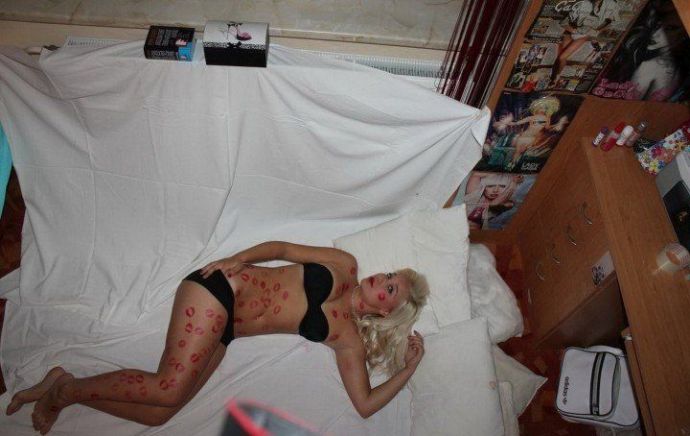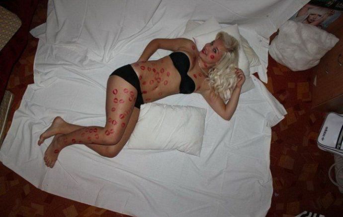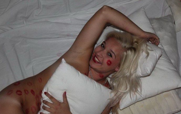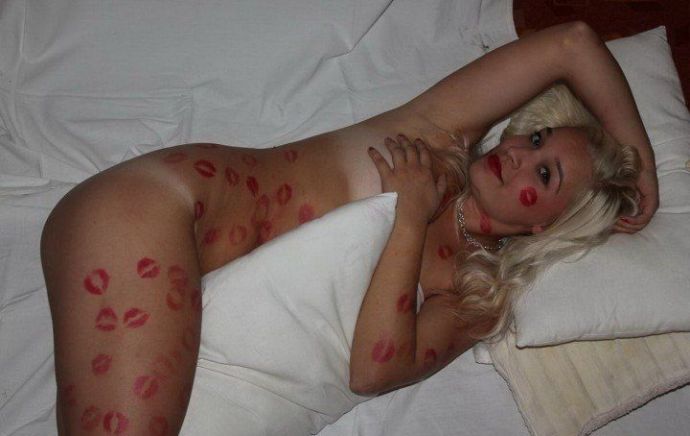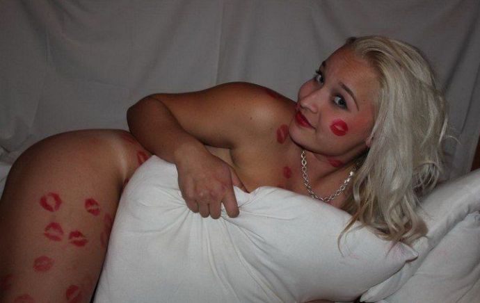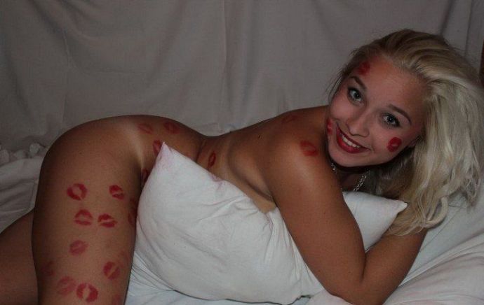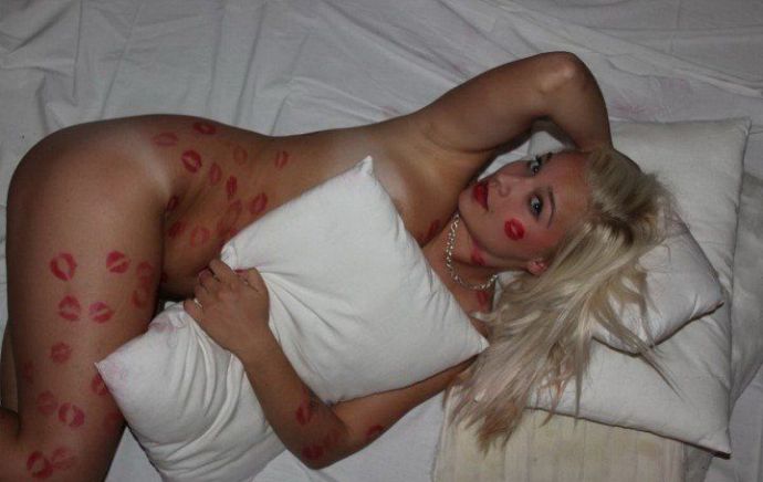 Кто её так расцеловал загадка, но блондинке видимо очень понравилось, ведь всё тело в поцелуях, видимо девушка любит красоткийский секс со своей подругой.