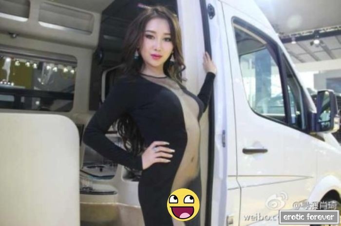 Пожалуй, это самый откровенный наряд девушки на автовыставке, который я когда-либо лицезрел. Эта красотка была замечена на автовыставке в китайском городке Гуанчжоу, а ее сексапильное платьице собрало вокруг данной модели целую массу восторженных парней Теперь понятно, почему мужчины так обожают посещать авто выставки))