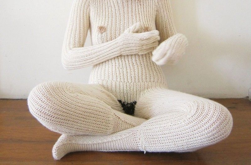 Нудистам в зимнюю пору приходится нелегко. Хочешь прогуляться по квартире в чем мама родила, а больно уж холодно. Для дам, которые не привыкли носить традиционную одежду и предназначен этот вязаный костюмчик во весь рост.